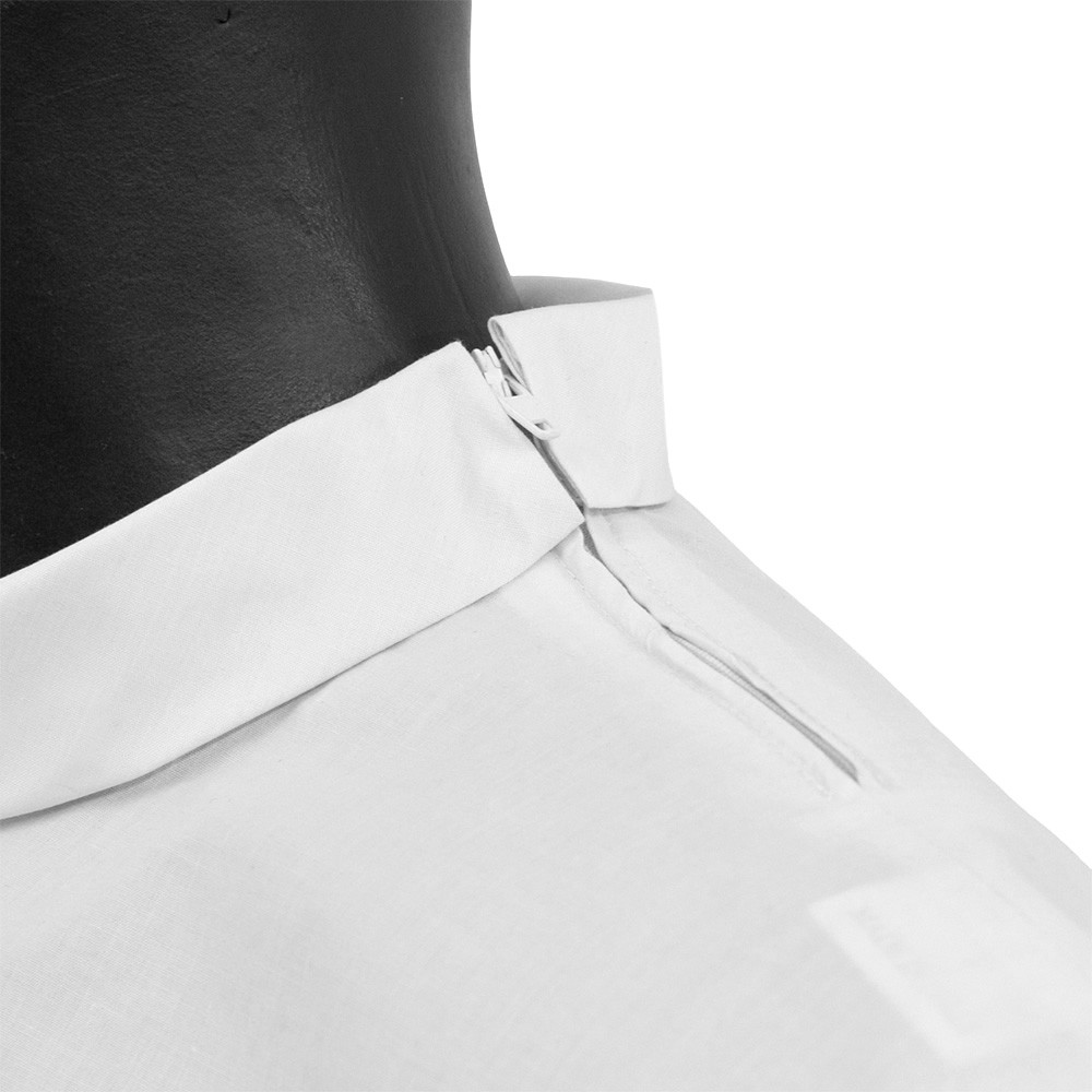 Priest amice of white color with side zipper. Made of fresh and lightweight fabric blend of cotton (45%) and polyester (55%).