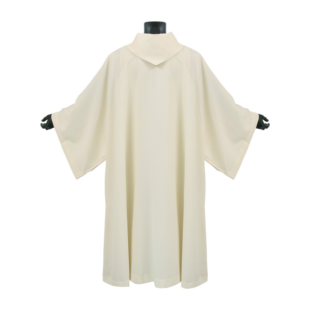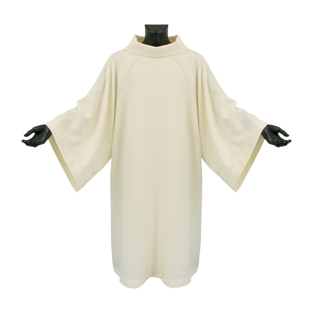 Ivory-colored priest alb with turn down collar and loose sleeves. Available in the following sizes: