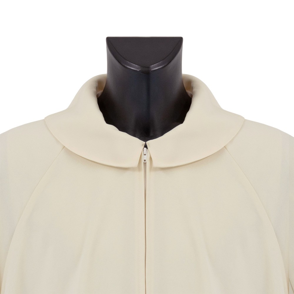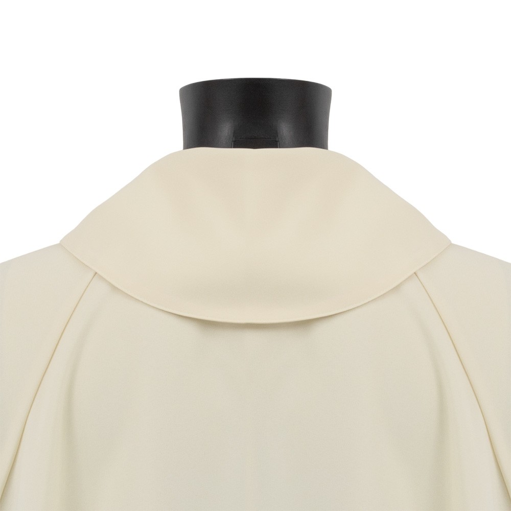 Ivory alb in polyester and wool with partition, zipper and pleats.