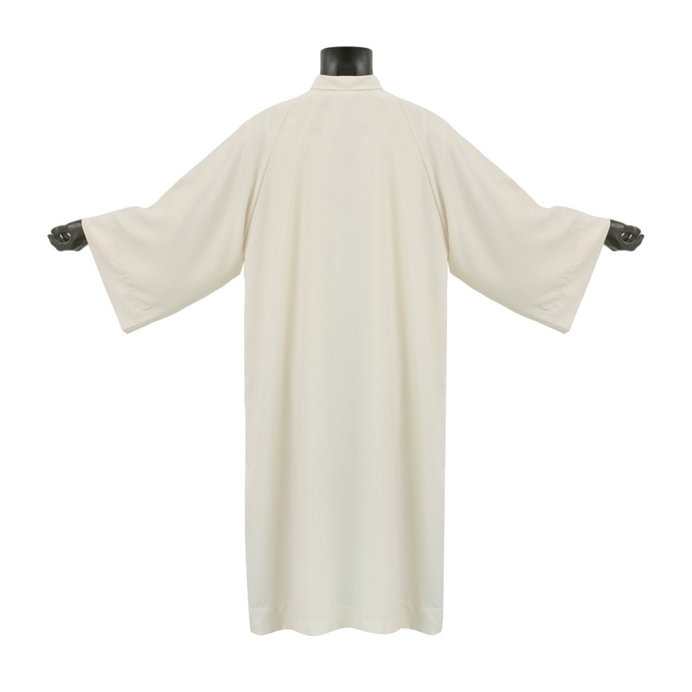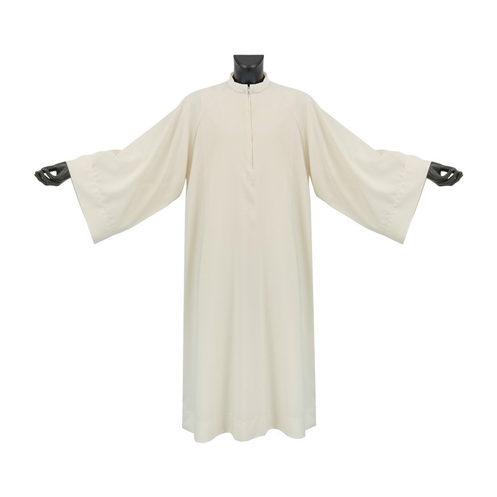 Ivory Sacerdotal Alb with Chest Zipper, No Pleats, Turned Collar, and Raglan Sleeves