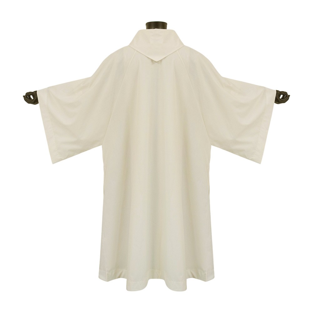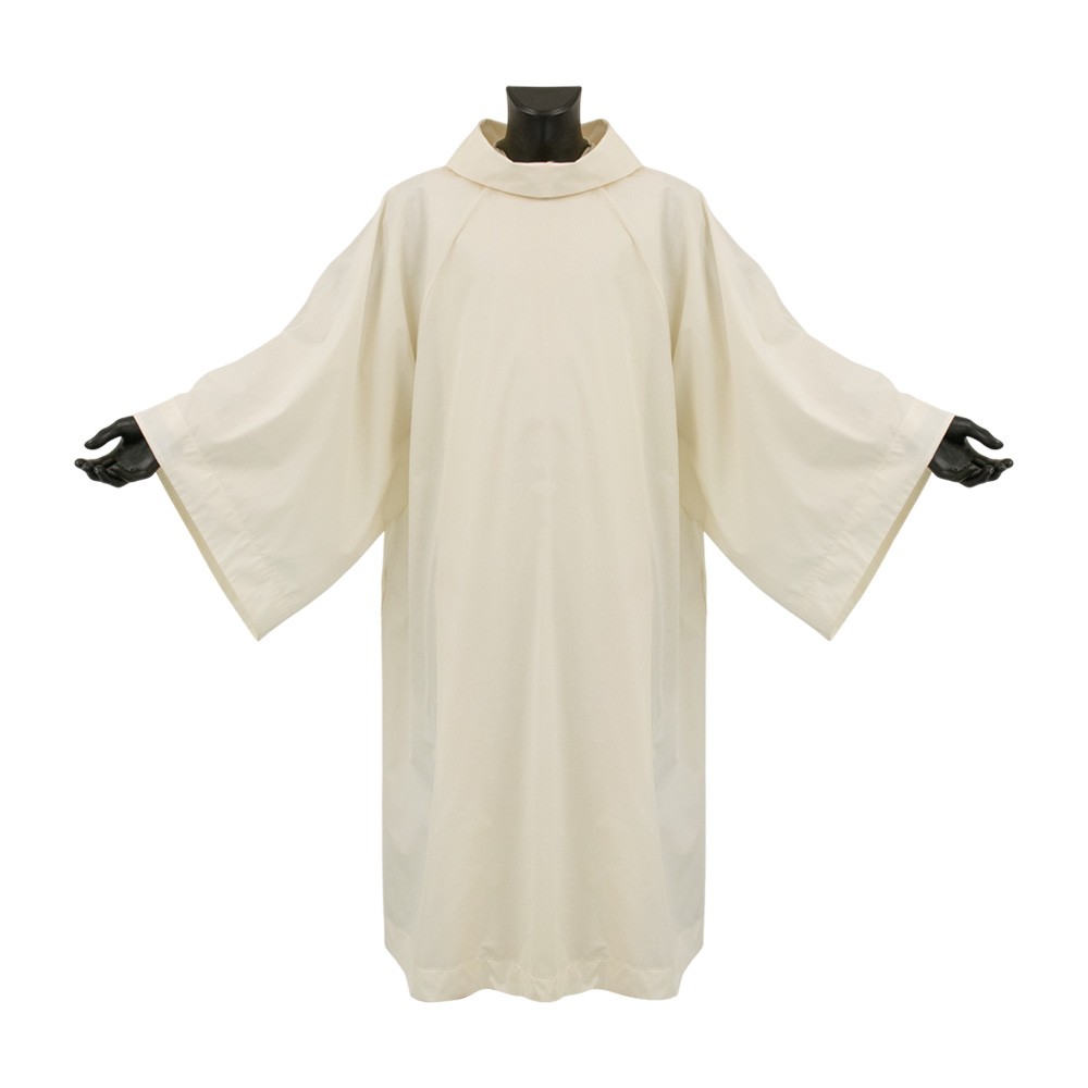 The alb is made of an ultra-lightweight wool and polyester blend fabric.