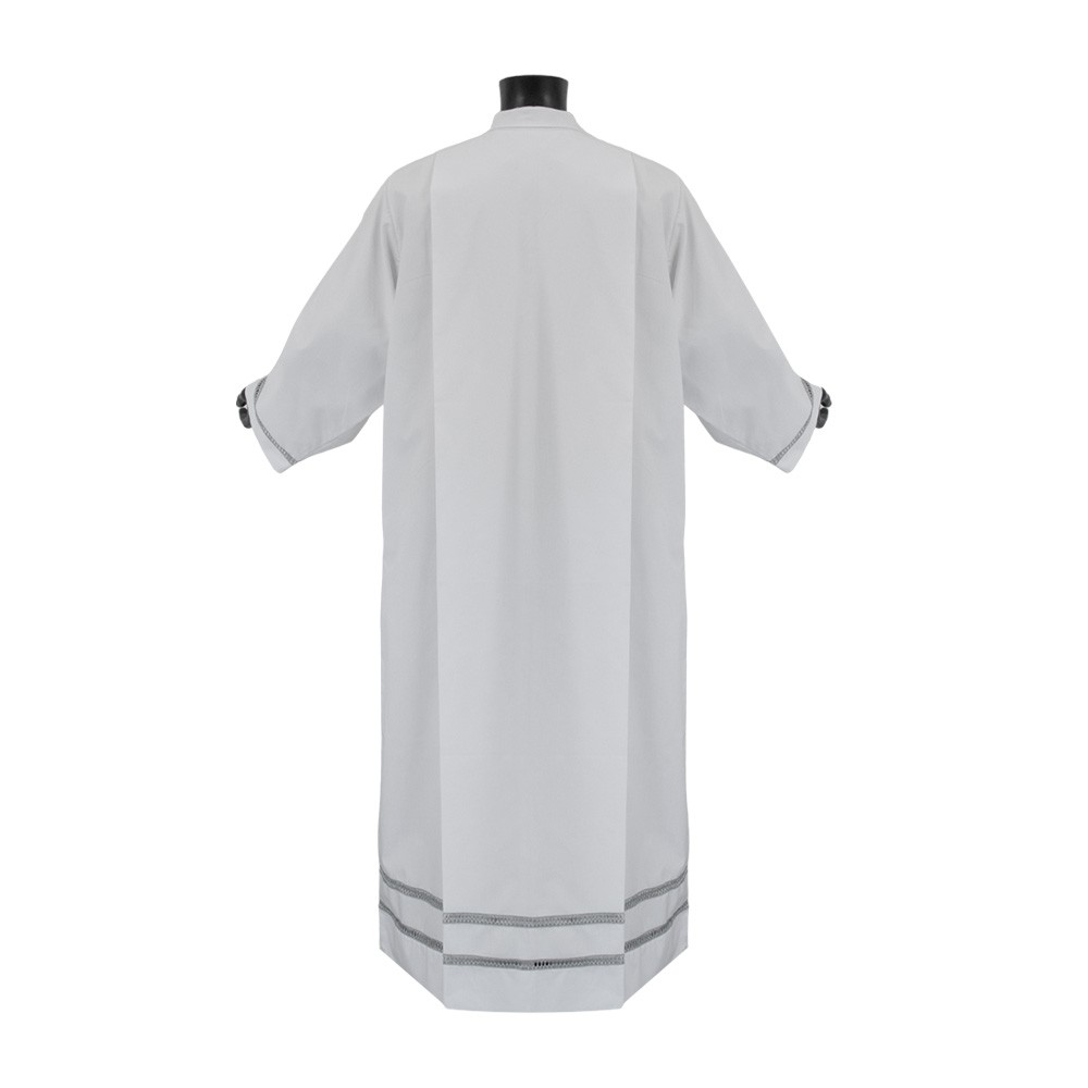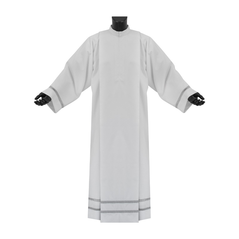 Liturgical alb for priests and deacons with elegant grey “Gigliucci” embroidery.