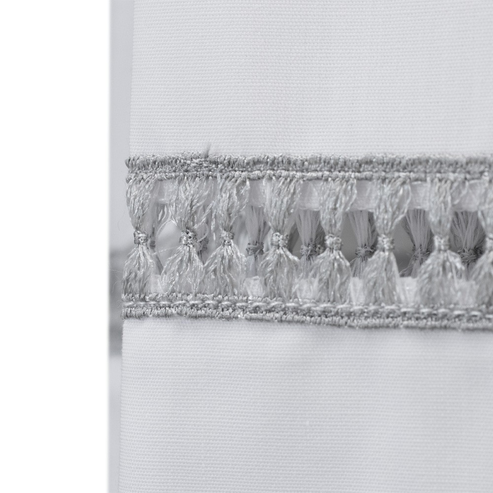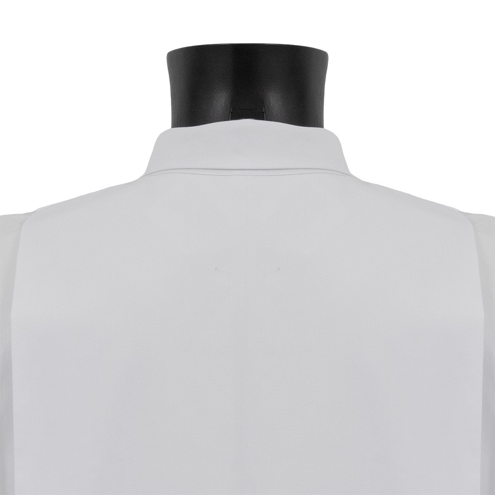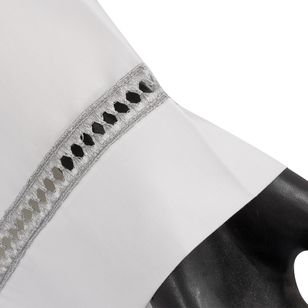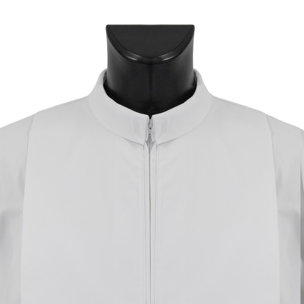 The delicate embroidery features two rows at the bottom and one row on each sleeve, adding a refined touch to the vestment.