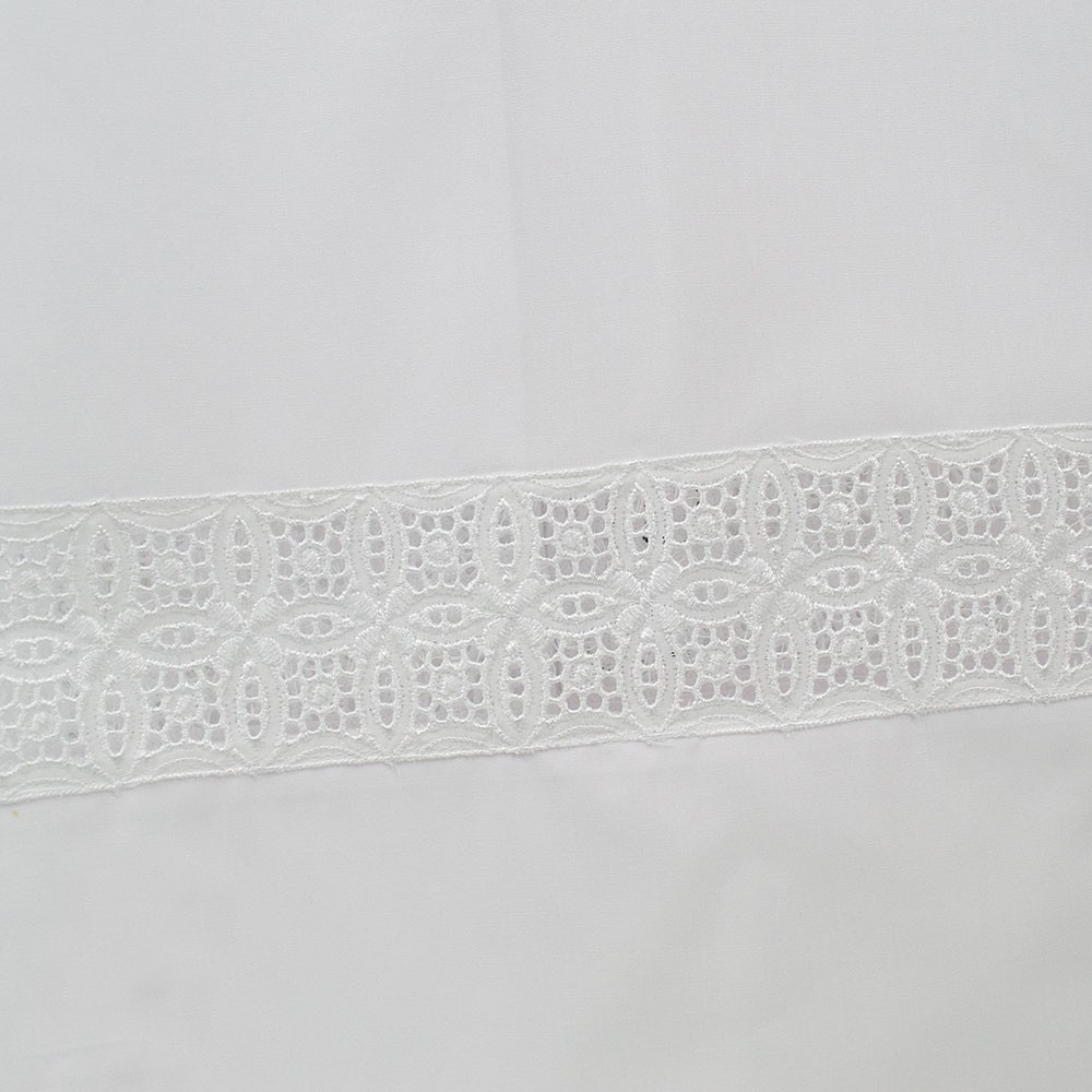 Liturgical alb of white color with pleats and band. Made of fresh and light terylene cotton.