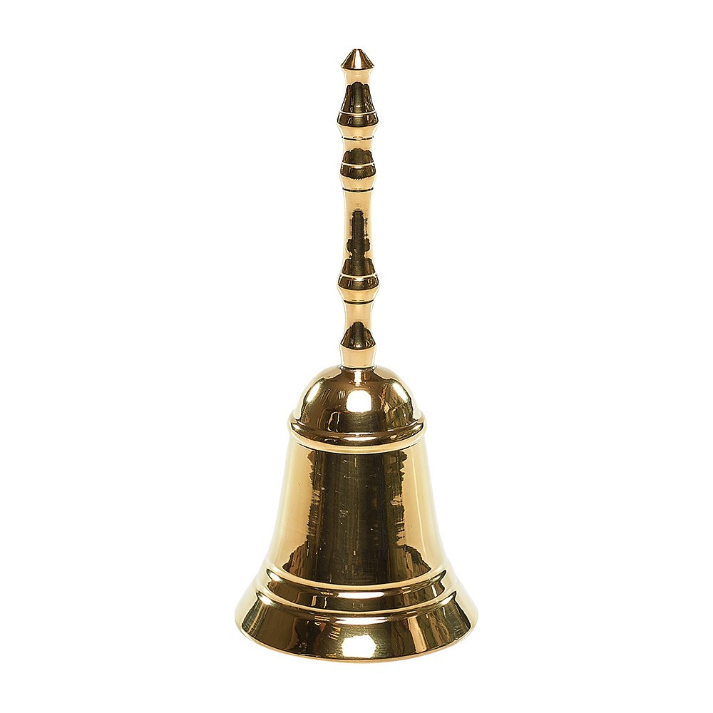 Liturgical bell in golden brass. The bell is 14 cm tall and has a diameter of 6.4 cm.