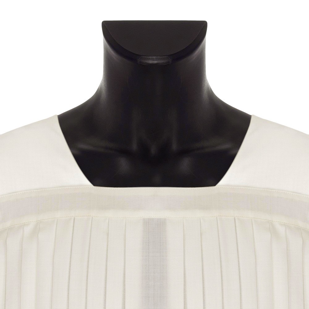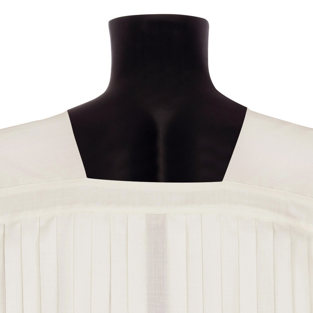 Crafted with a square neckline and ivory hand-drawn thread work. Embroideries are featured at the bottom of the surplice and around the sleeves.