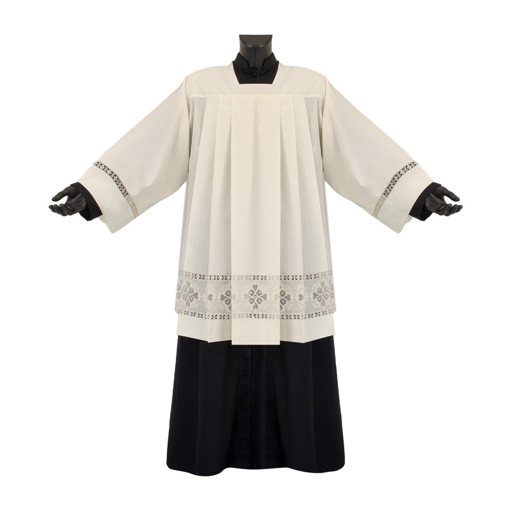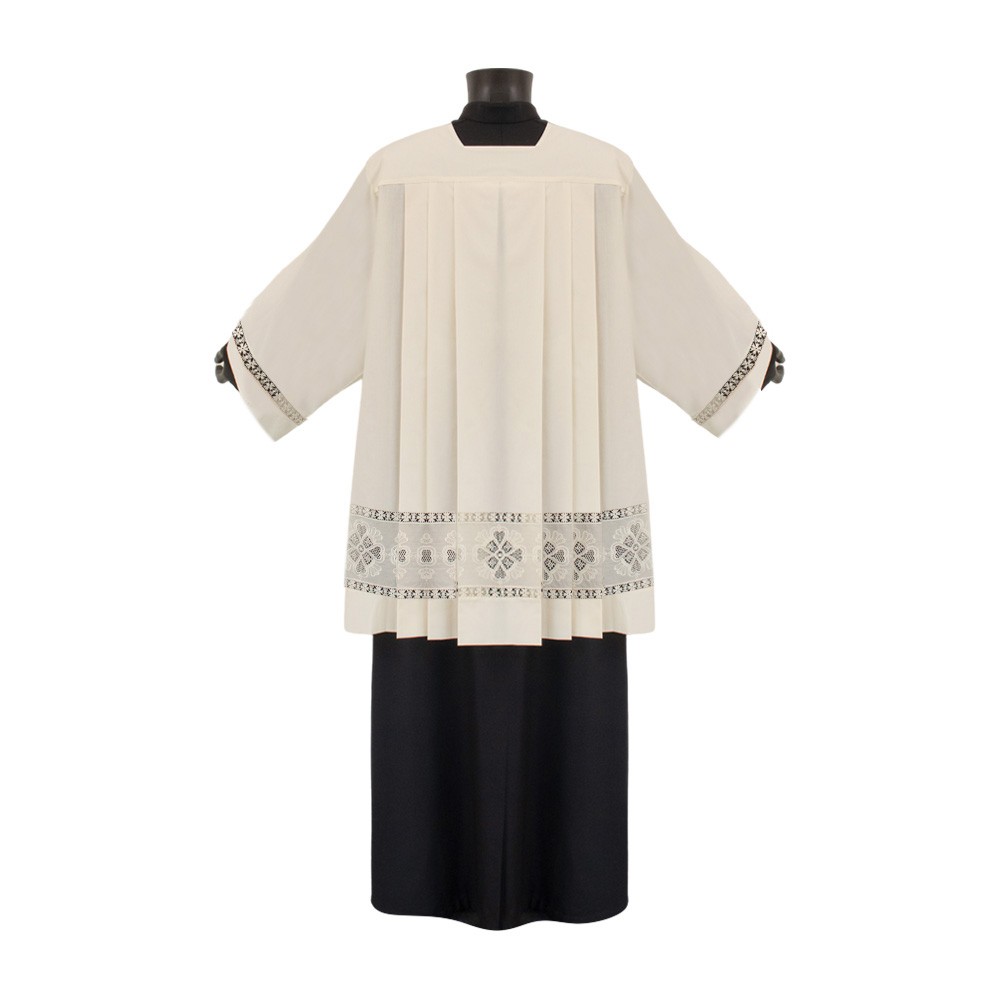 Priest surplice of ivory color with pleats and Macramè lace band.