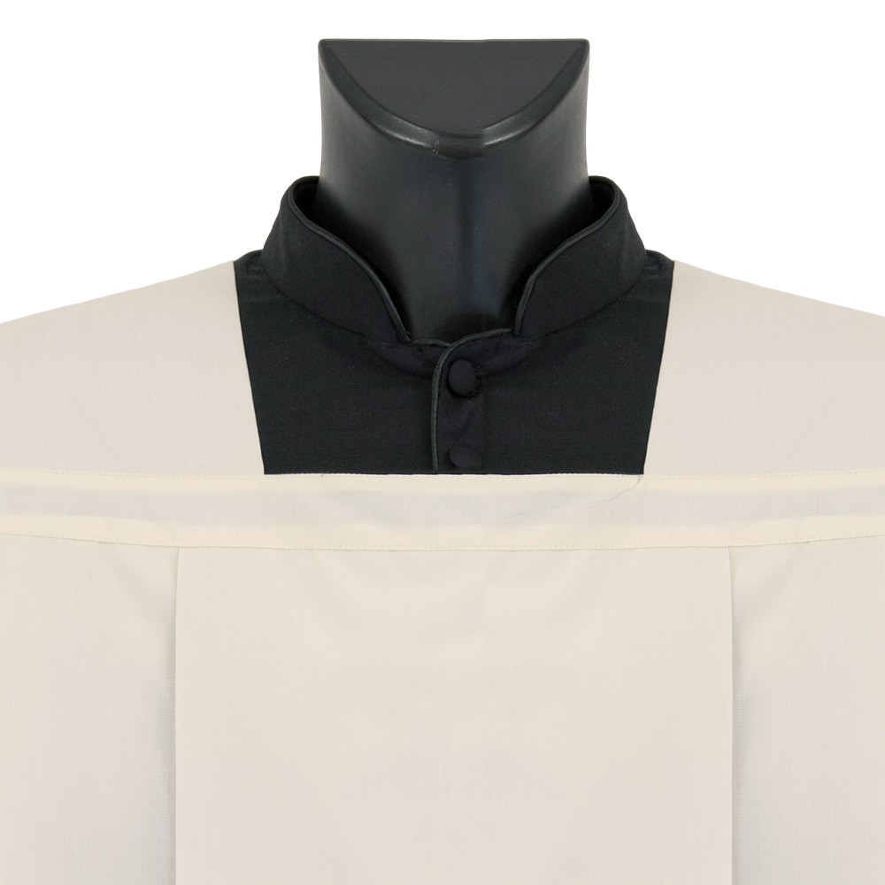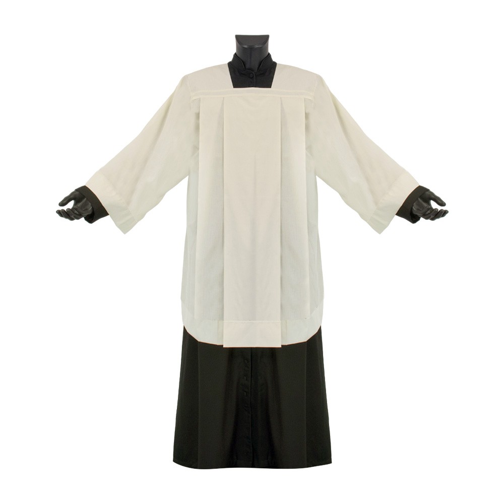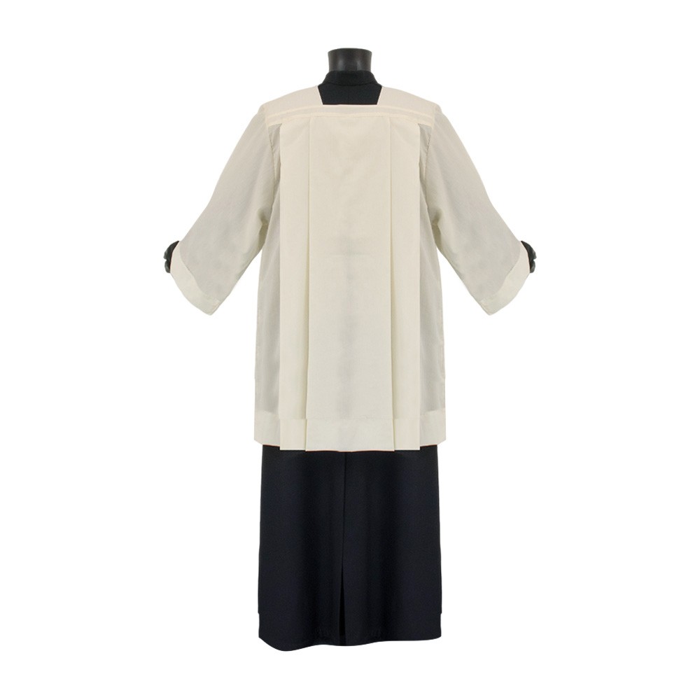 Pleated surplice of ivory color with square neck.