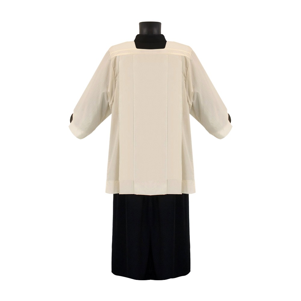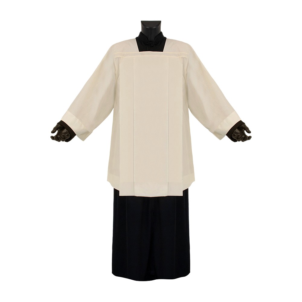 This liturgical vestment is made of light cotton blend fabric. Plain model without embroidery, featuring four pleats on the front and back.