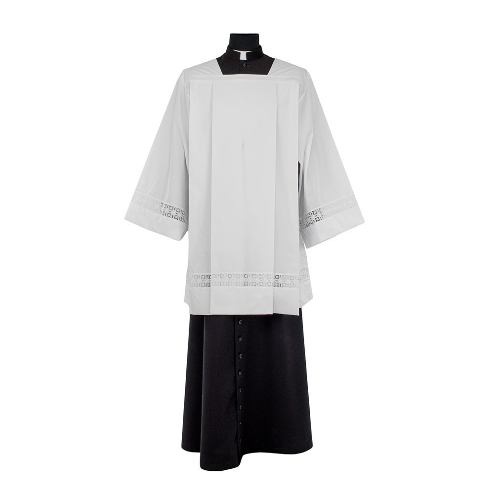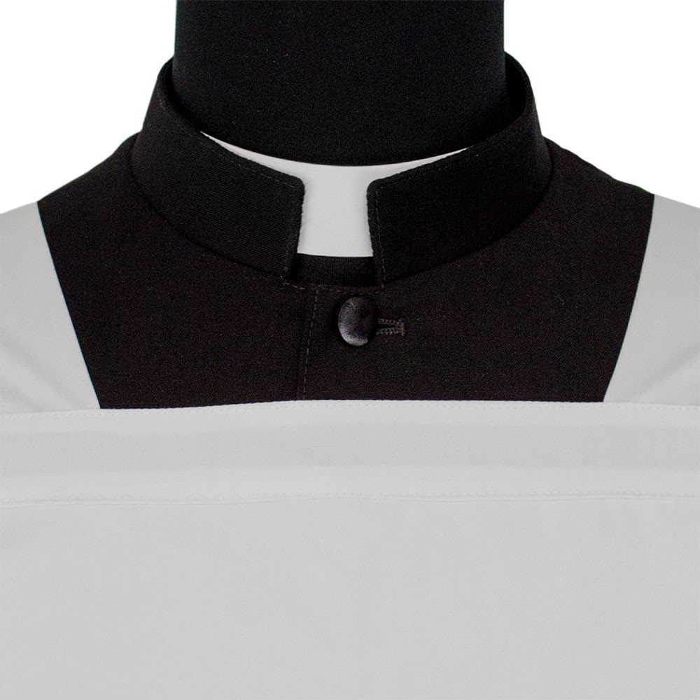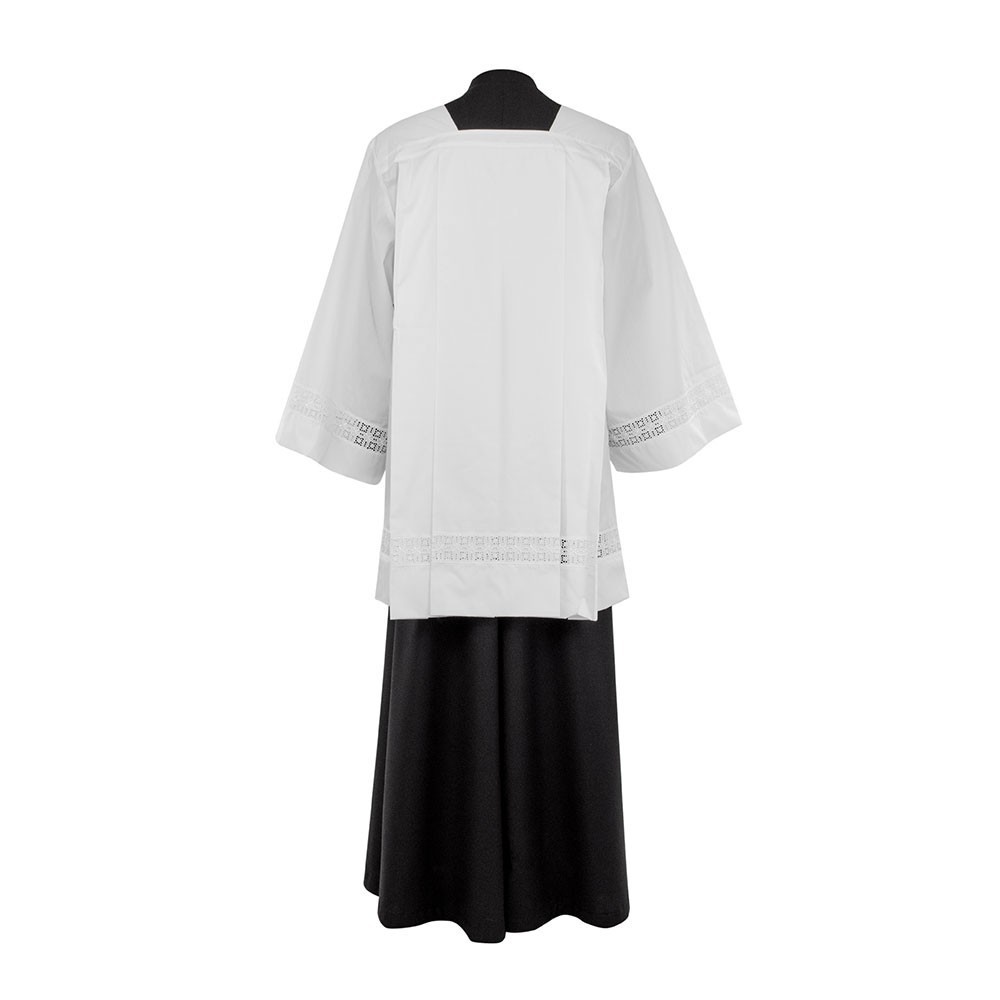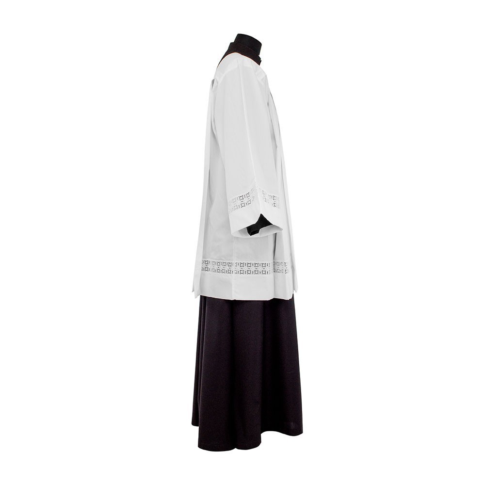 Surplice with double partition in white cotton on the botton and on the sleeves. Made of very light cotton blend fabric.