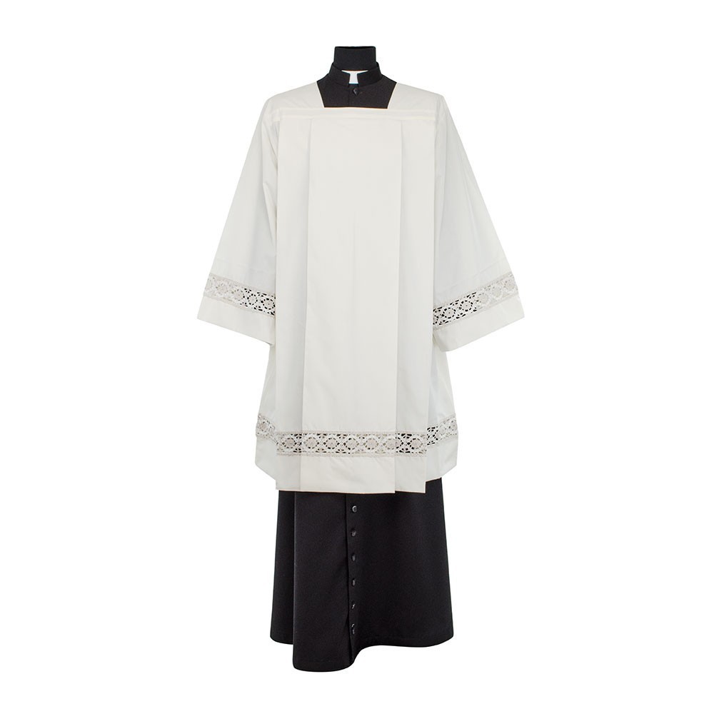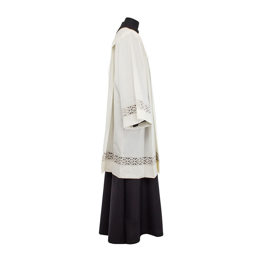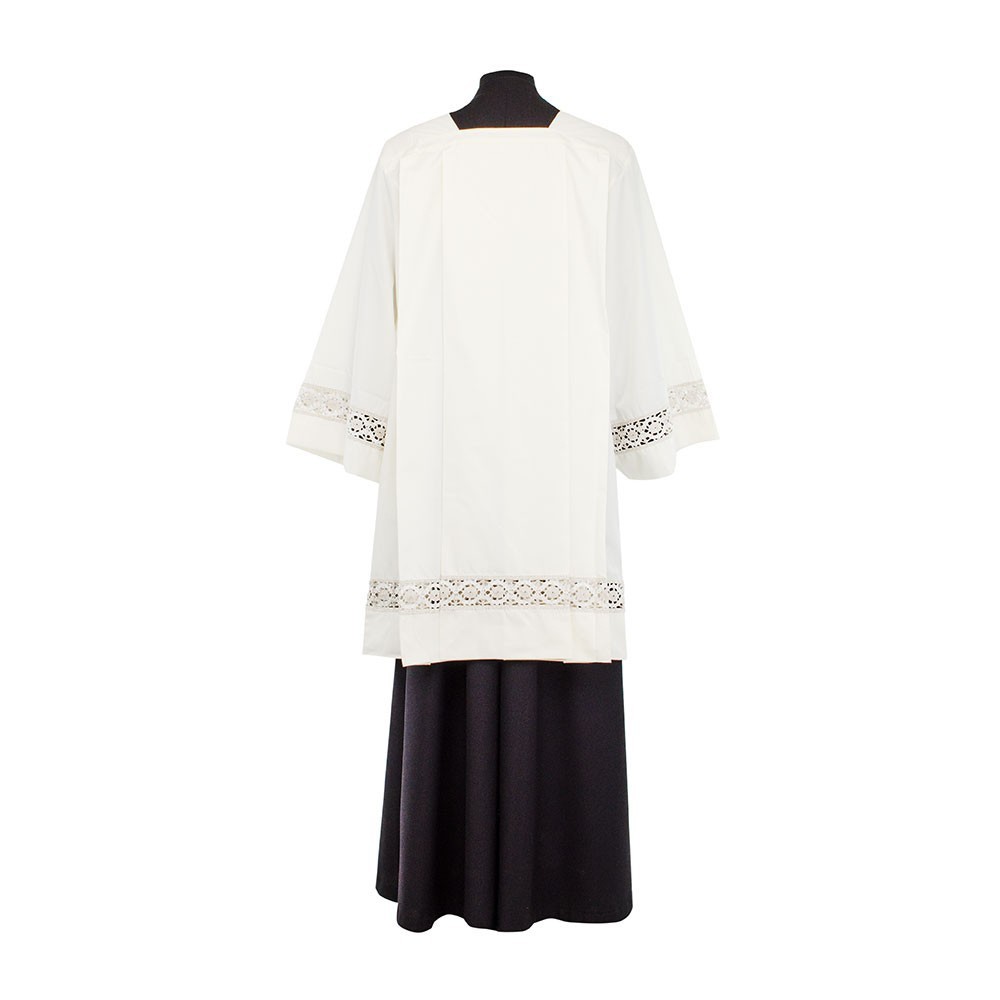 An elegant band is added on the lower part of the alb and on both sleeves. Excellent fit. Available in the following sizes: 95/100/105/110 cm. Made in Italy.