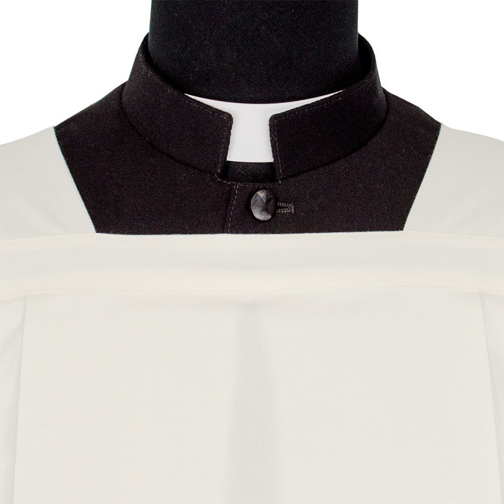This surplice is hand-embroidered on a wool and polyester blend fabric.