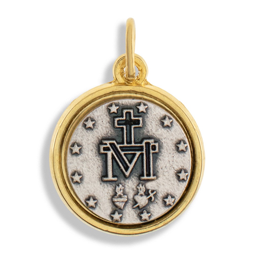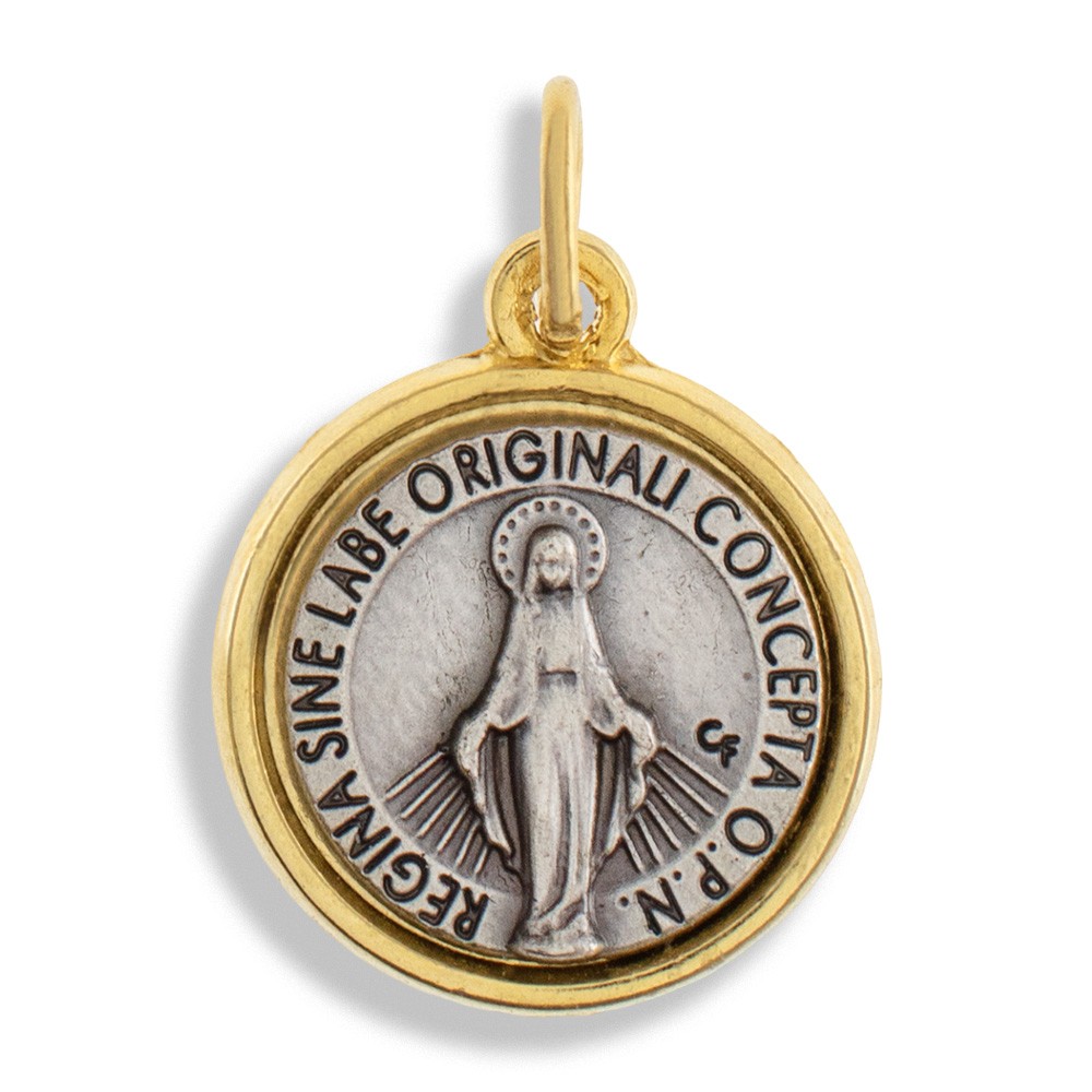 Round medal of Our Lady Of Miracles in metal with gold and silver finish.
