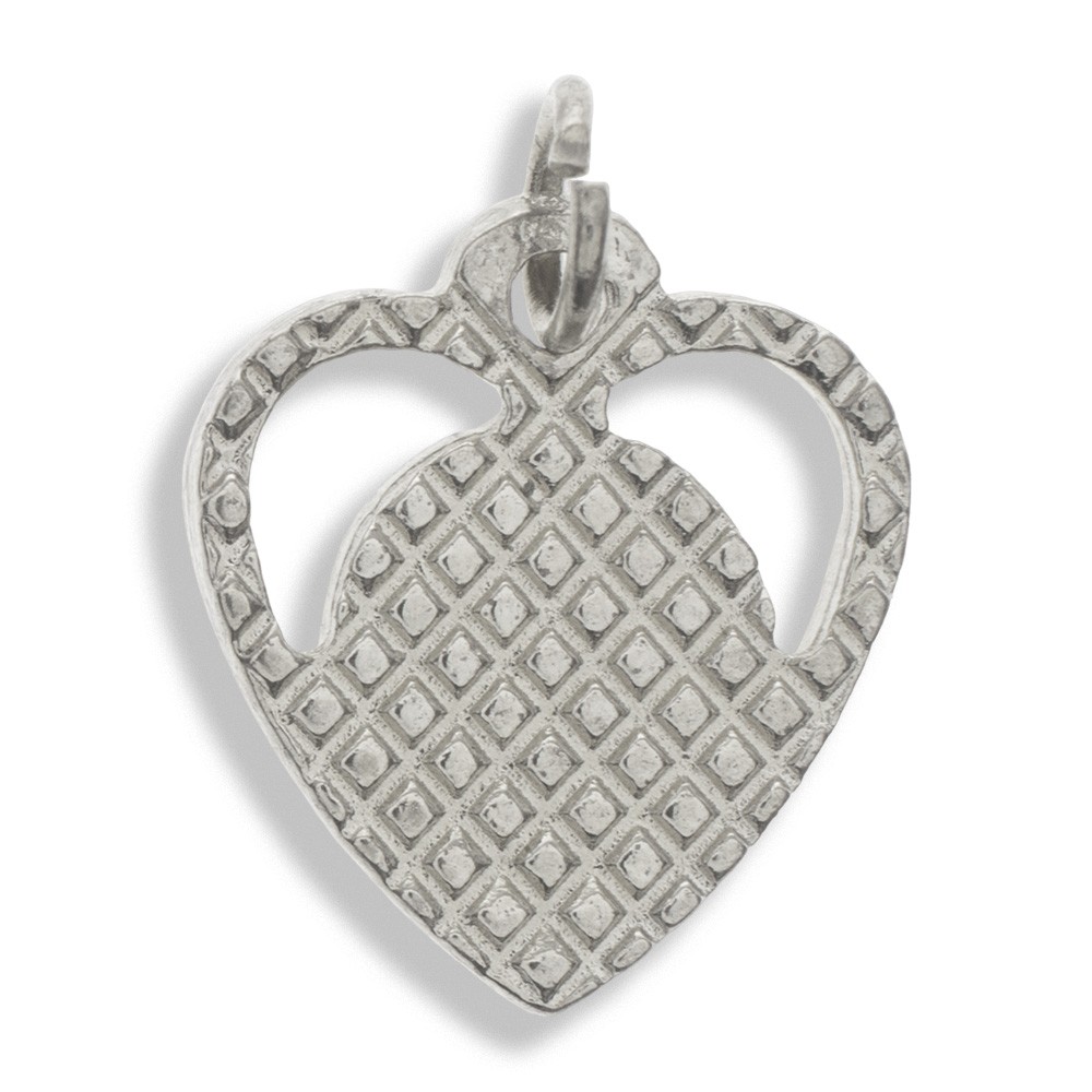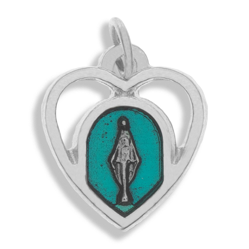 Medal shaped like an openwork heart with enameled image of Our Lady Of Miracles in the middle.