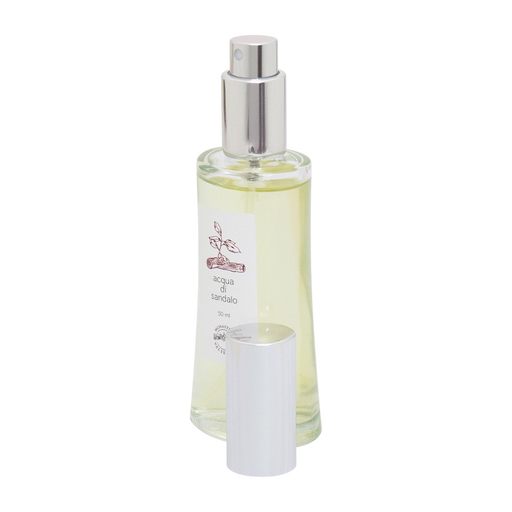 Sandalwood Perfumed Water, a dry and intense fragrance handcrafted by the nuns of Valserena Monastery.