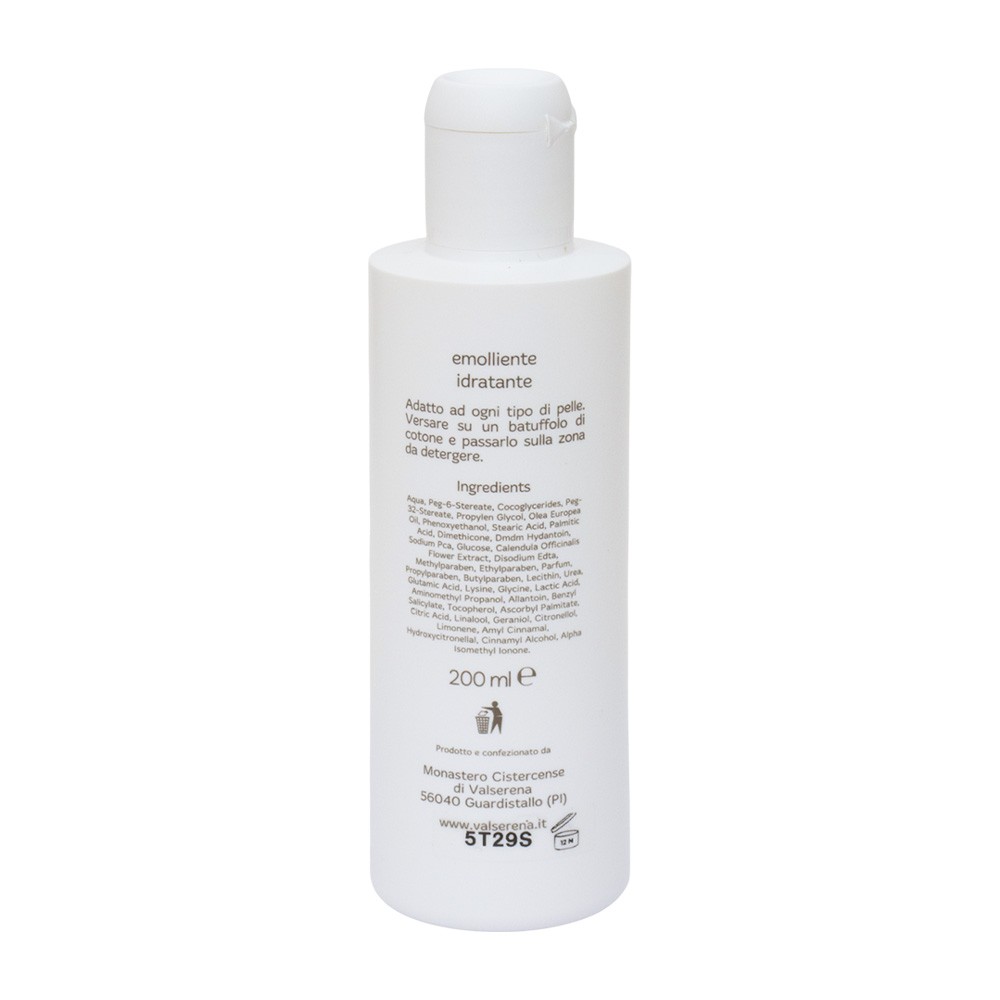 This cleansing milk, suitable for all skin types, is made by the nuns of Valserena Monastery. Enriched with calendula extract, it deeply cleanses the skin, removes impurities, and leaves the face feeling fresh and hydrated.