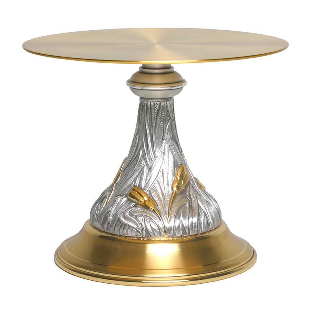 Throne for the exposition of Blessed Sacrament made of bicolor brass with gold and silver finish. Finely decorated base. 100% made in Italy.