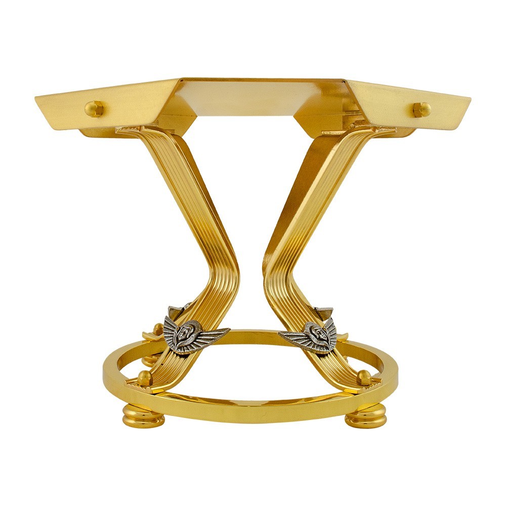 Monstrance stand entirely made of golden brass decorated with four silver Angels placed at the base of the section bars which support the upper part.