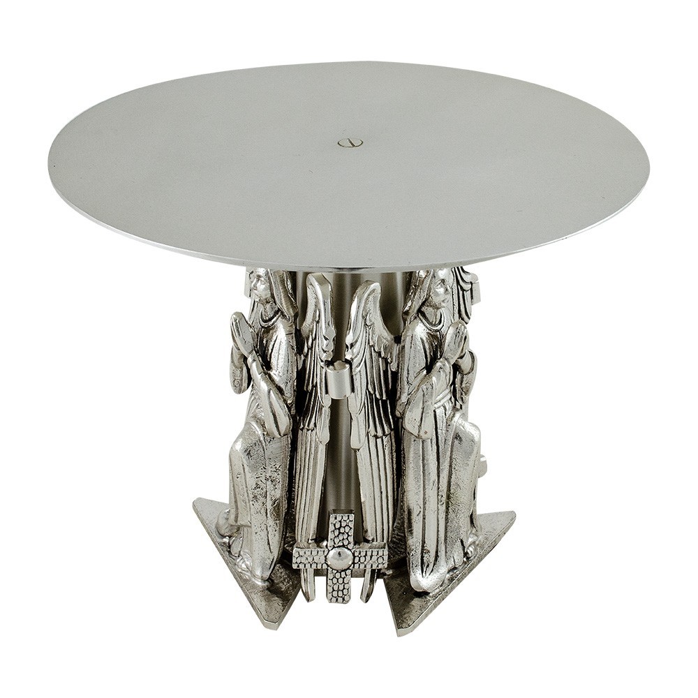 This monstrance stand is a sacred furnishing made of bicolor cast brass, decorated with three praying angels with joined hands.