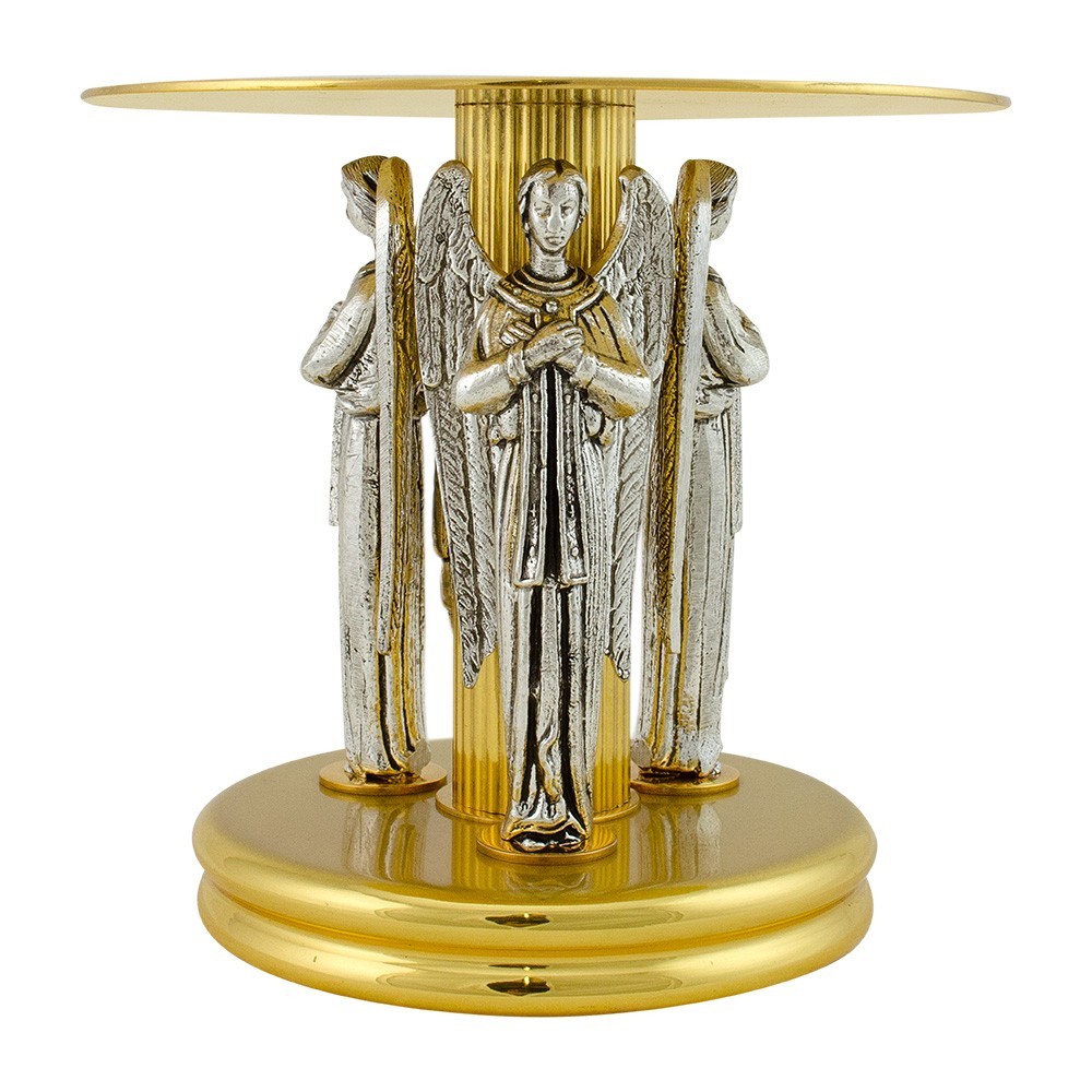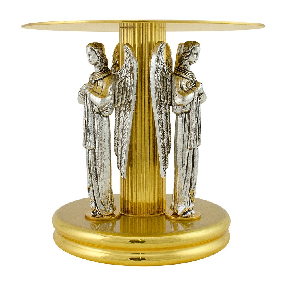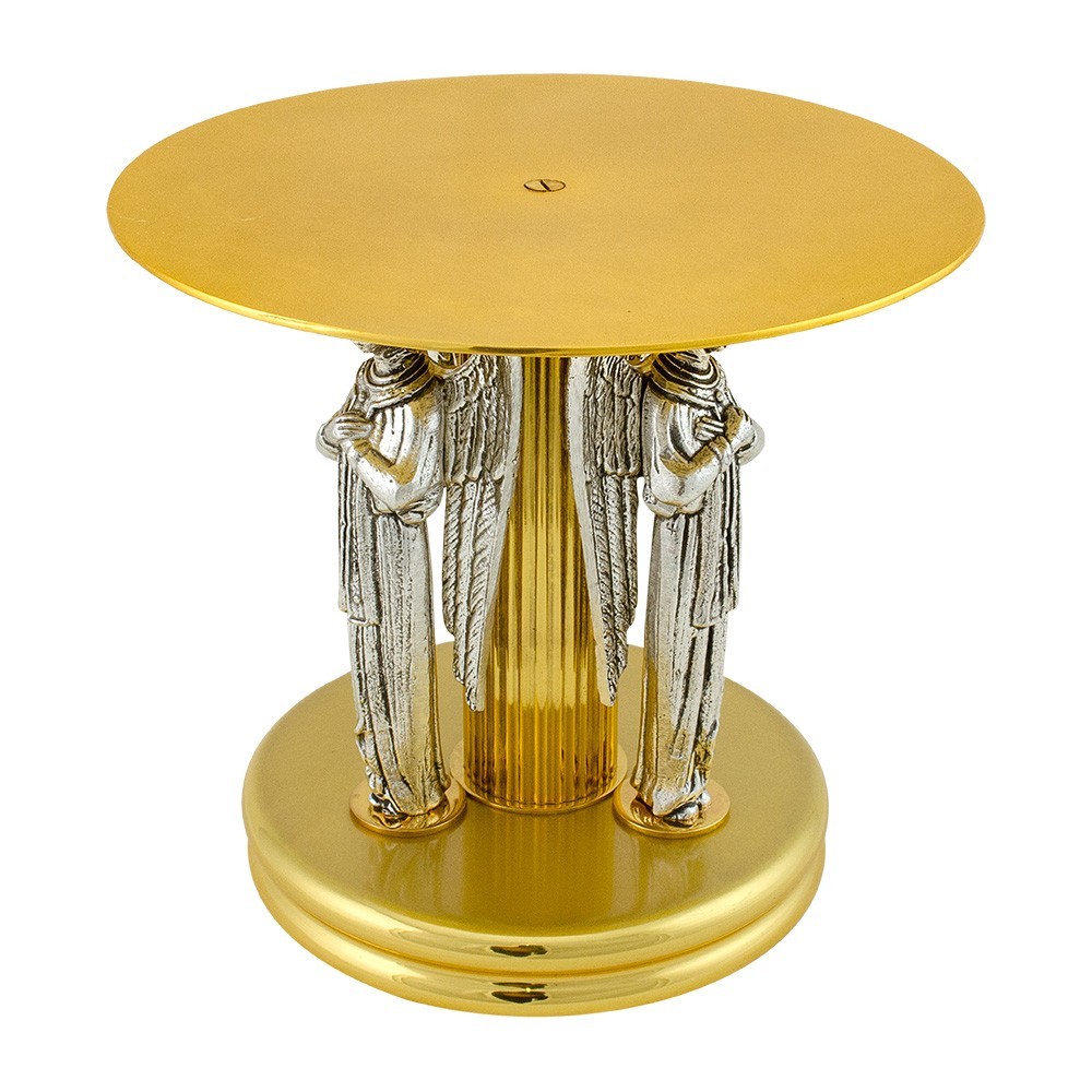 Monstrance base with Angels decoration. Made of golden and silver-plated brass.