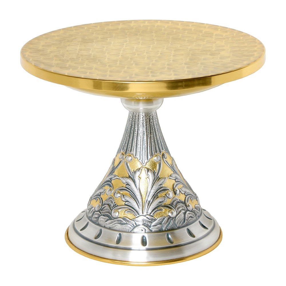 Monstrance base with Angels decoration. Made of golden and silver-plated brass.
