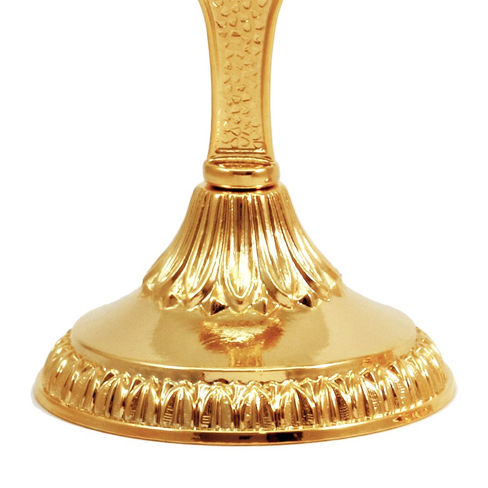 Monstrance for Eucharistic adoration, entirely made of gold plated brass. Its base is artisanally decorated using a particular casting technique. The shrine is 196cm cm tall and has a diameter of 8 cm.