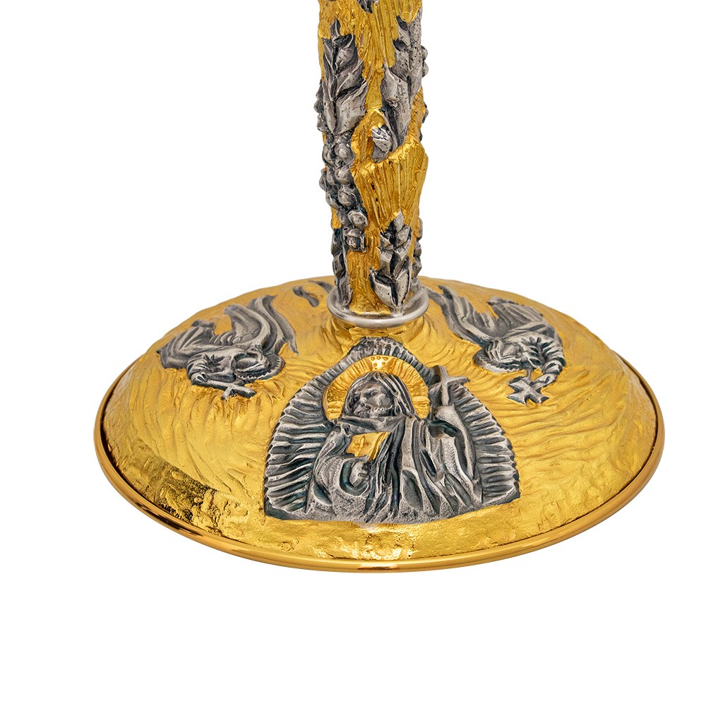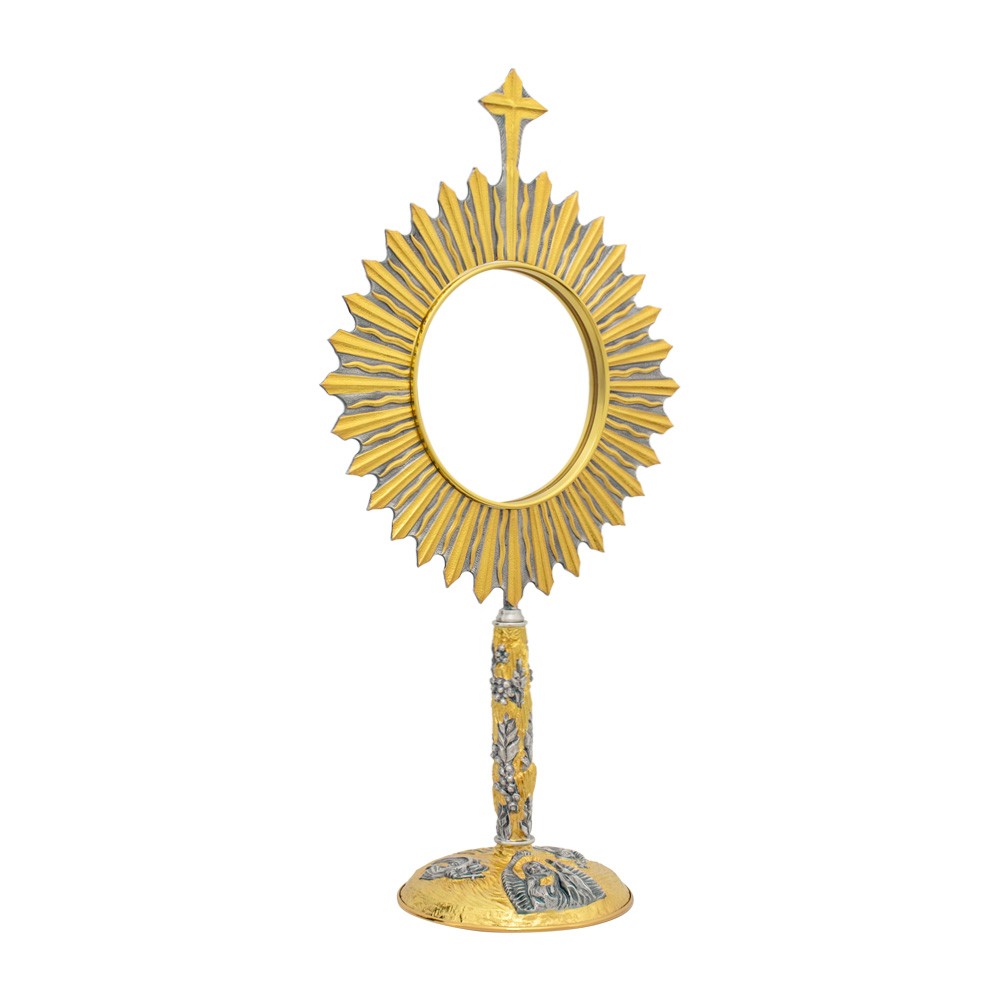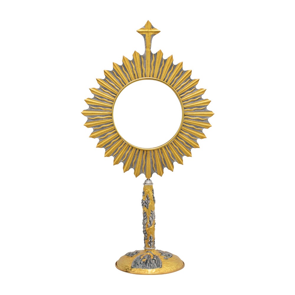 Monstrance for the exposition of the Blessed Sacrament. Made of brass with casted base.