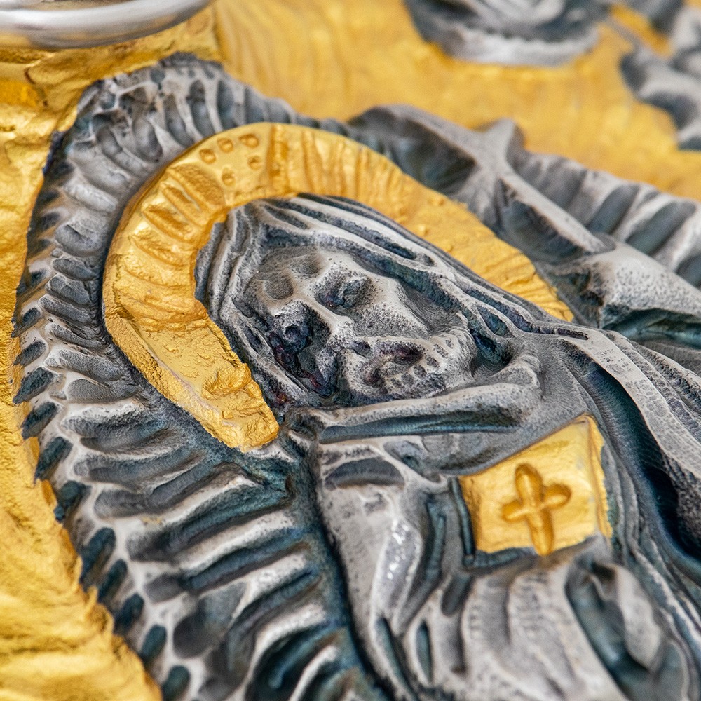 Shrine in golden brass with base depicting grapes and Vine Leaves. Height: 15 cm.
