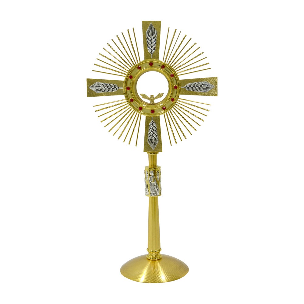 Bicolor monstrance for the exposition of the Blessed Sacrament, h 63 cm.
