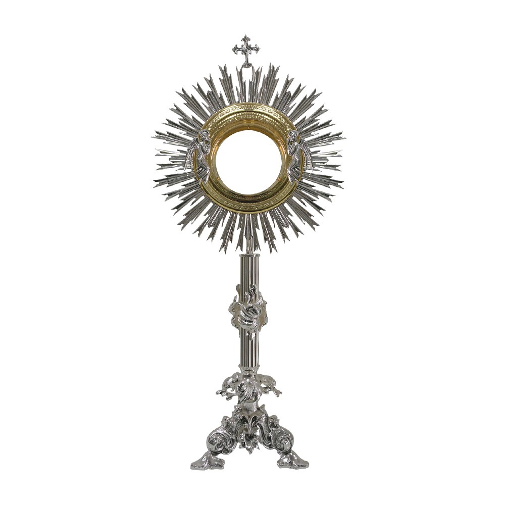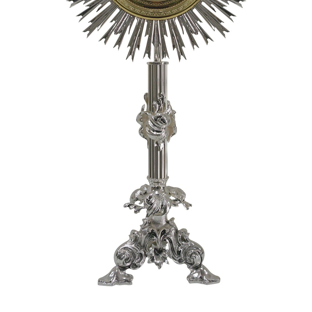 Chapel monstrance with short stem and base decorated in 1700 style.