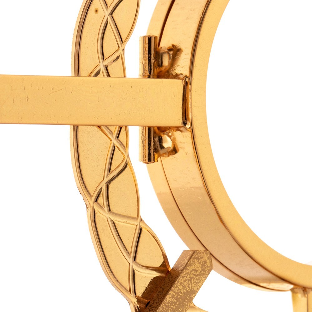 Shipping in 2 weeksMonstrance for magna host. Made of gold-plated brass with four cardinal red enameled crosses.