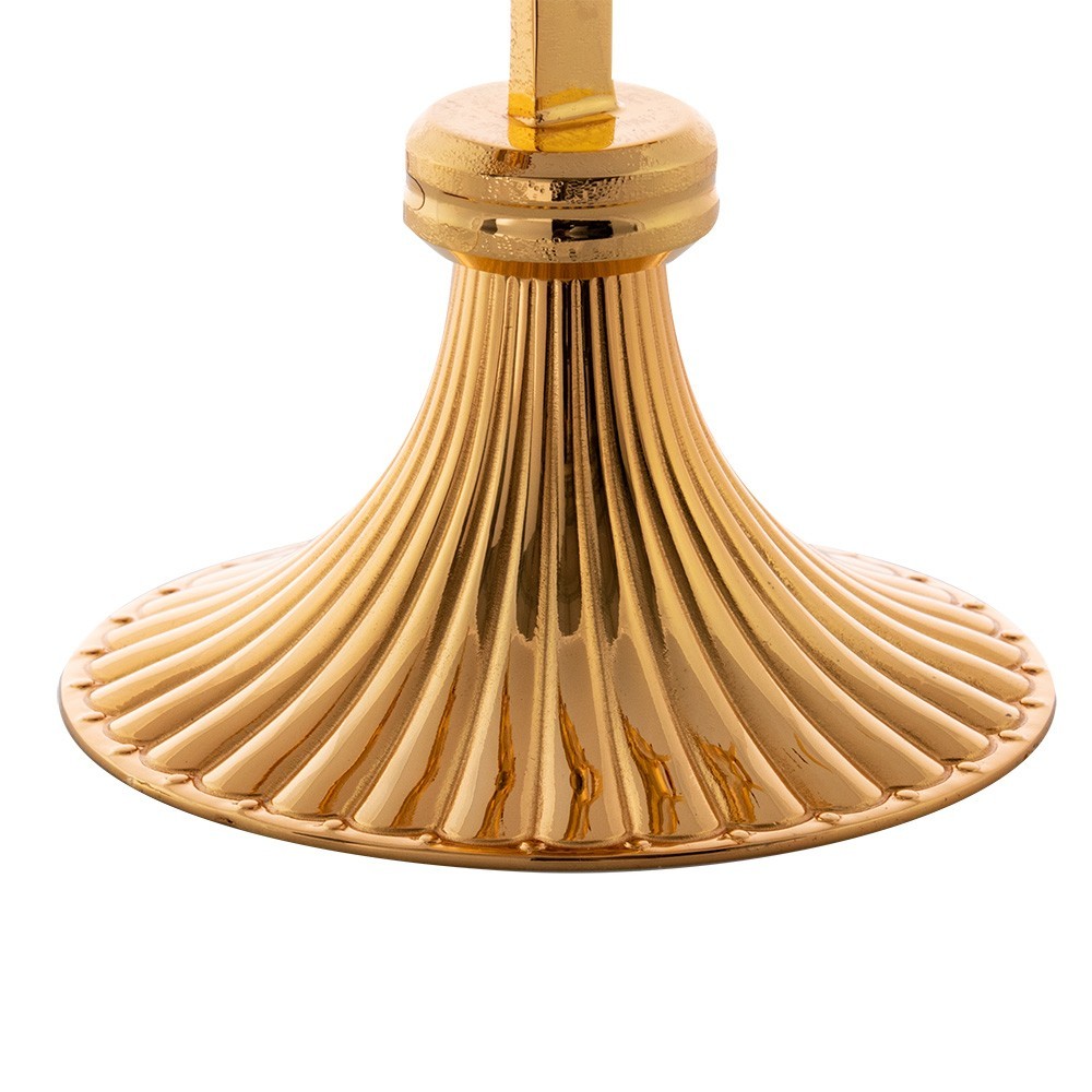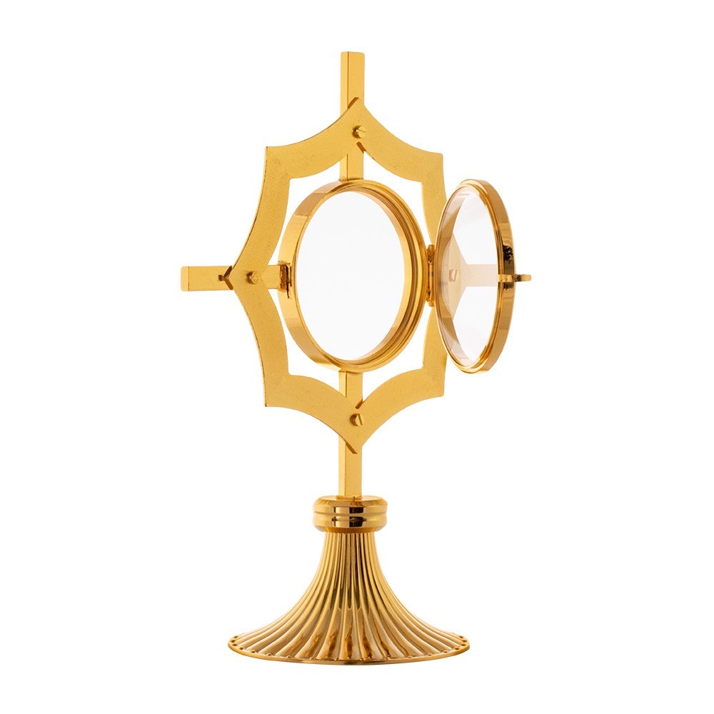 Monstrance shrine in gold-plated brass with decorated base.