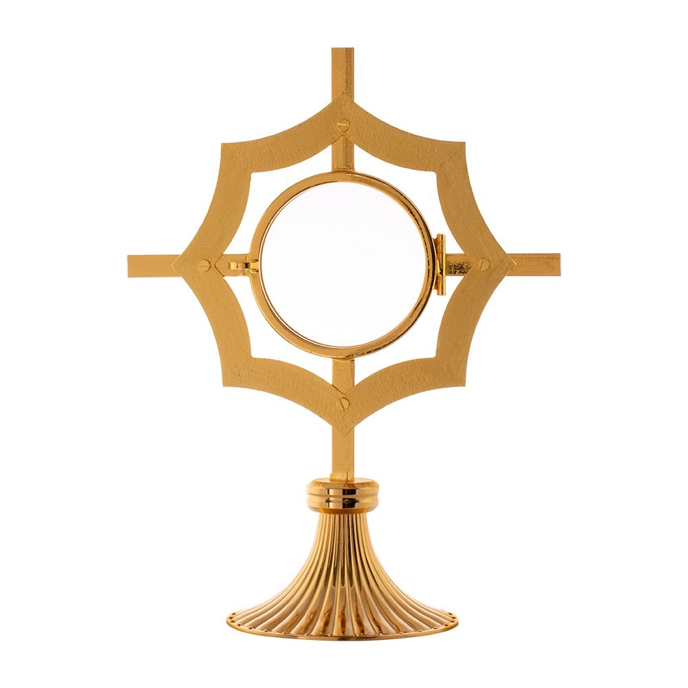 Nineteenth century style monstrance in gold-plated brass decorated with rays.