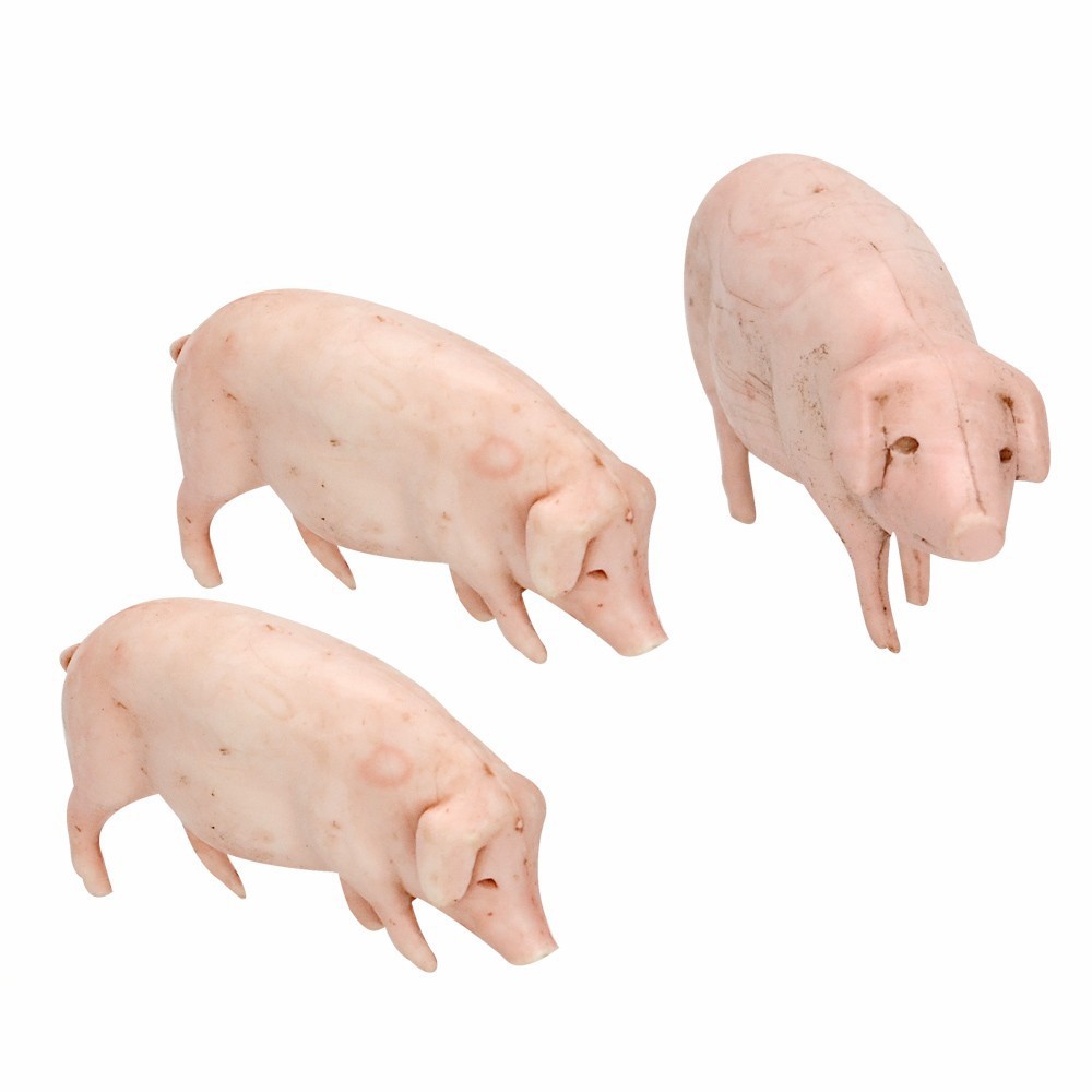 Set of three assorted pigs, proportional to 10 cm statues. Made of PVC and finely hand-painted.