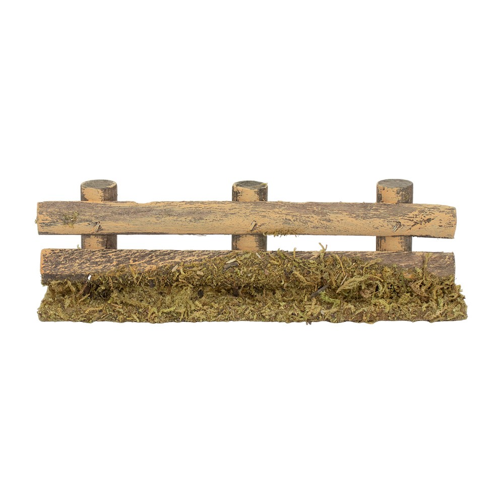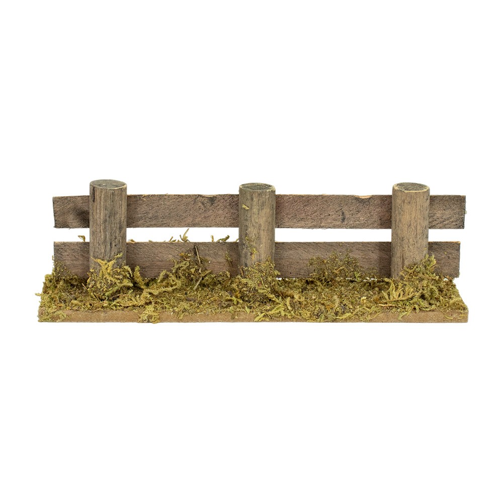 Wooden fence with trunks and moss, suitable for adorning Nativity scenes.