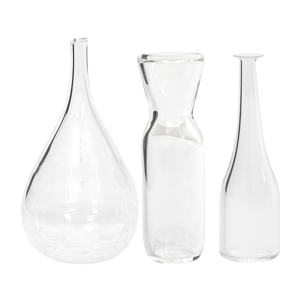 Complete package with 1 bottle, 1 quarter bottle and 1 wine bottle made of glass-like material.