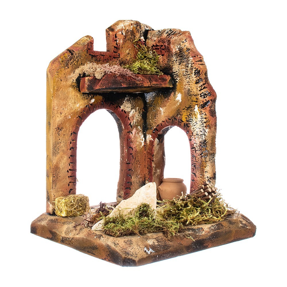 Shepherdess with pitcher and fountain for 15 cm nativity scenes in plaster.