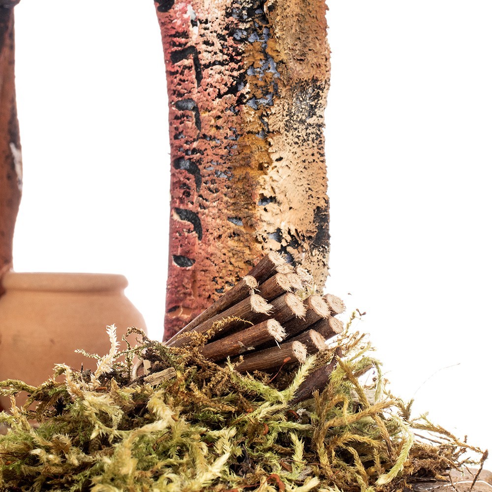 Handcrafted Nativity hut for statues with a max. height of 10-12 cm. This stable is entirely made of cork and handpainted, enriched with a tree trunk.