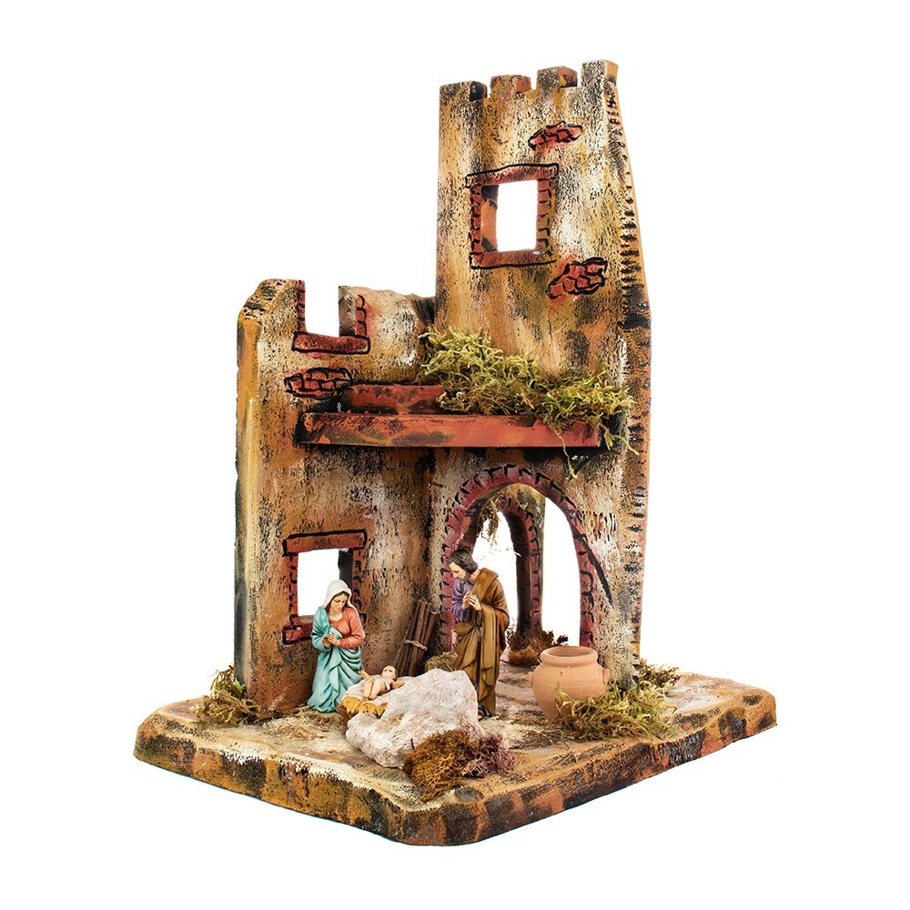 Nativity stable. Size: H 48 cm, base 28x28 cm.