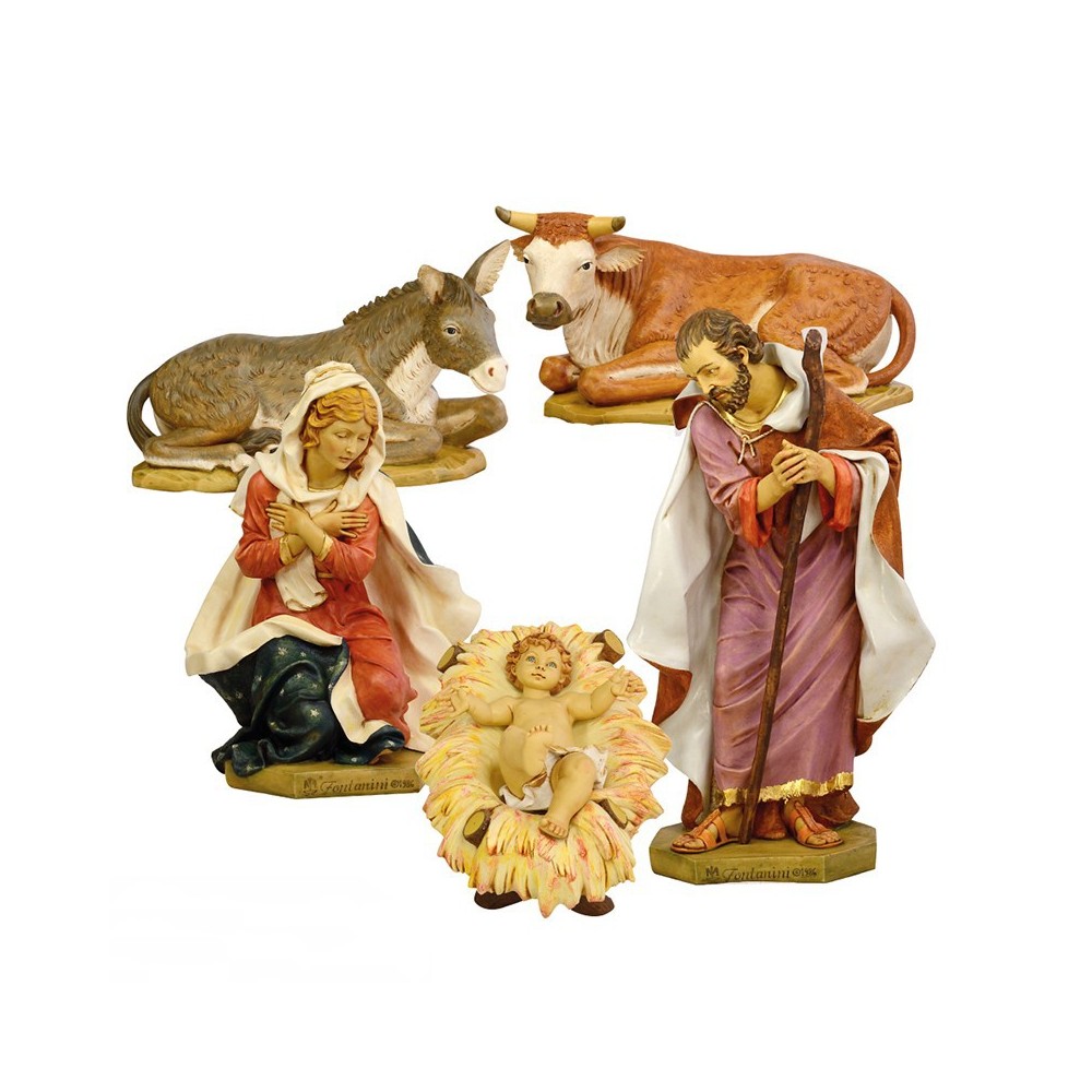 This Nativity scene consists of 5 pieces: Saint Joseph, Mary, Baby Jesus, ox and donkey. The statues are made of PVC and are finely handpainted piece by piece by skilled workers. Tradition and innovation, creativity and technique have distinguished this company for years. Entirely made in Italy.