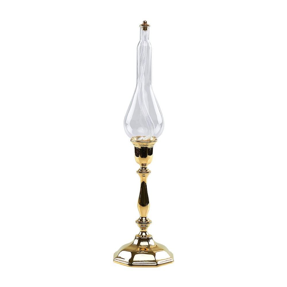 Lamp for liquid wax with brass base.