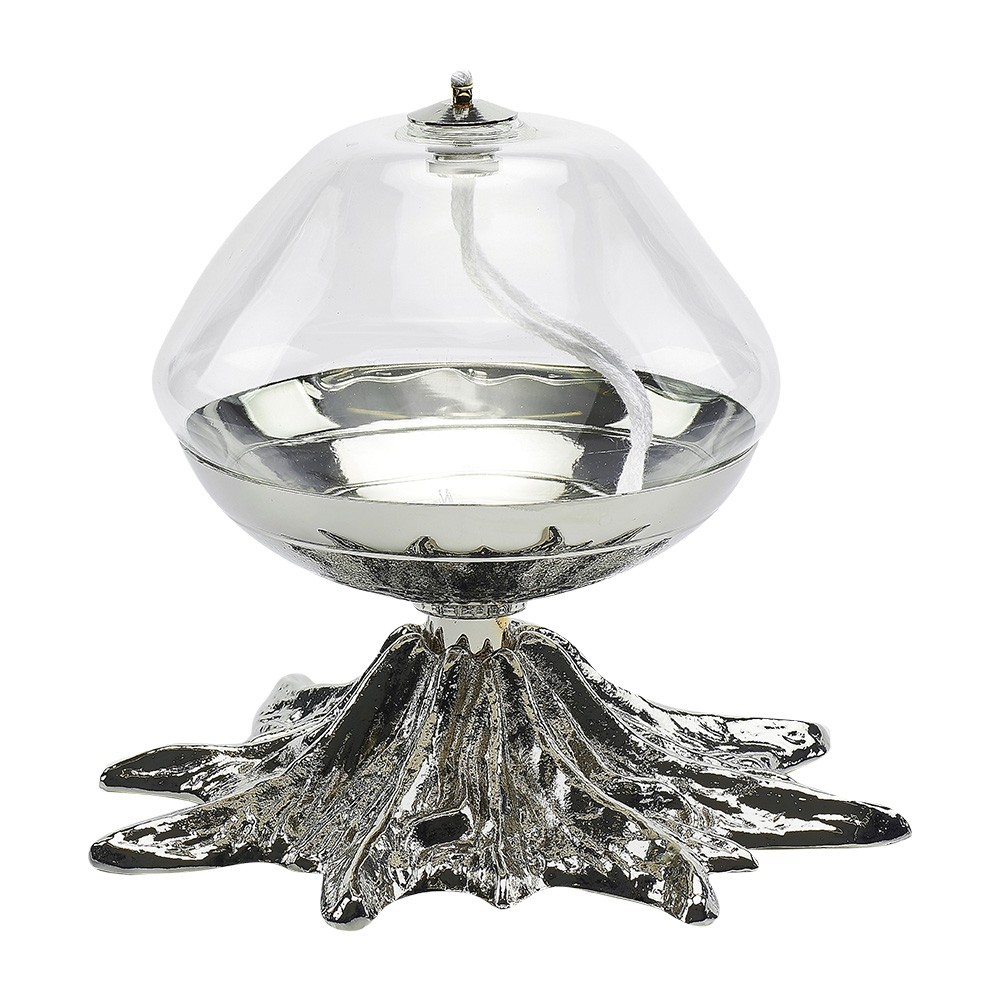 Liquid wax lamp, "Mars Star" model. Made of transparent white glass with base in silver cast bronze.