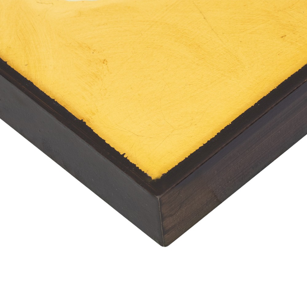 This icon is made on a dark wood board with golden background using the screen printing technique.