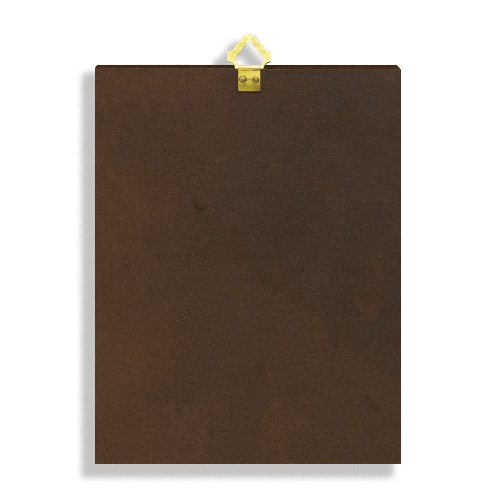 This icon is made on a dark wood board with golden background using the screen printing technique.