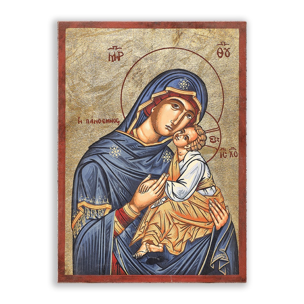 Screen printed icon in wood, Virgin Mary with Child, 40x30 cm.