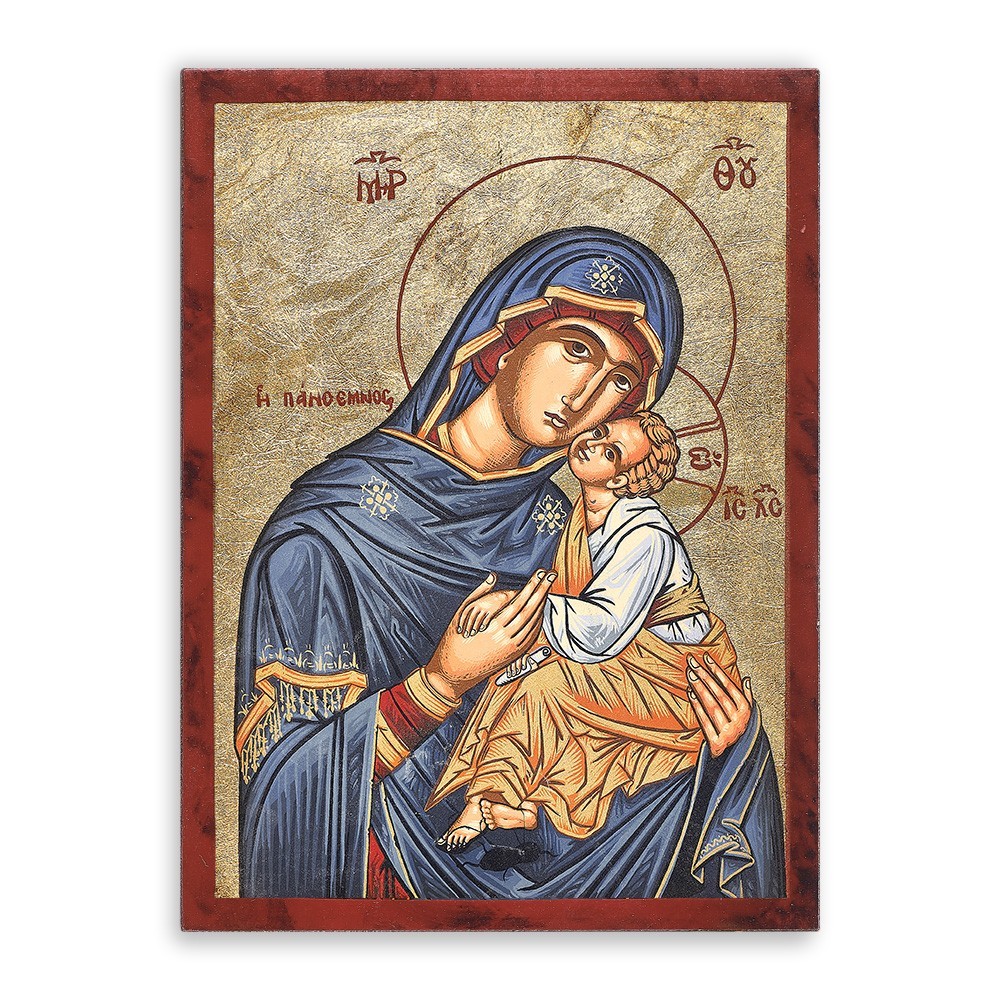 Screen printed icon in wood, Virgin Mary with Child, 40x30 cm.