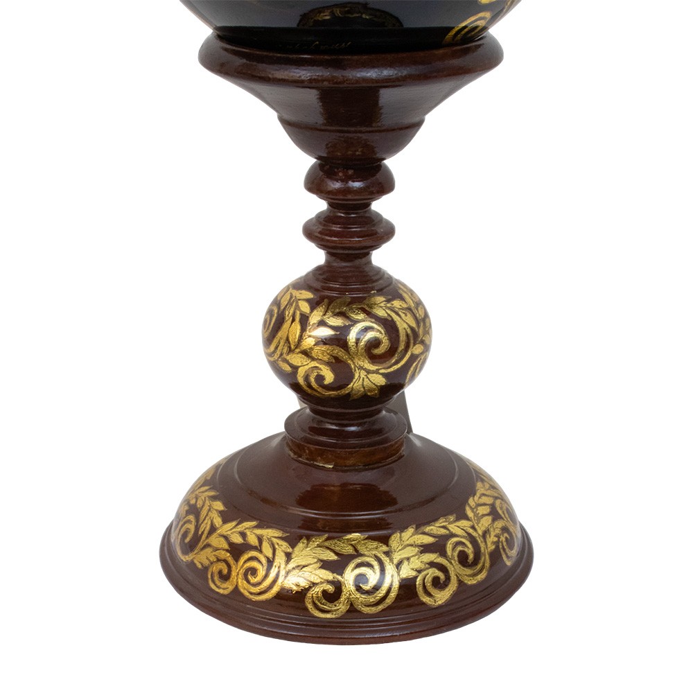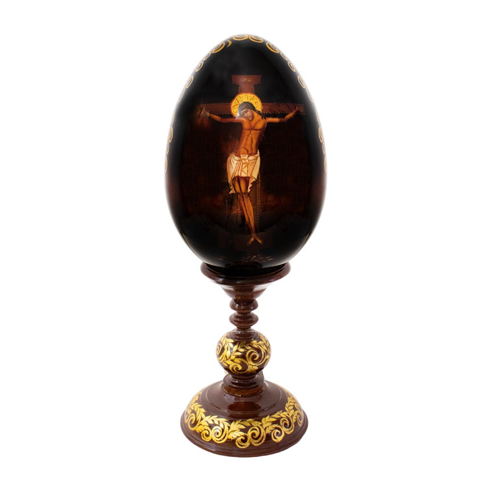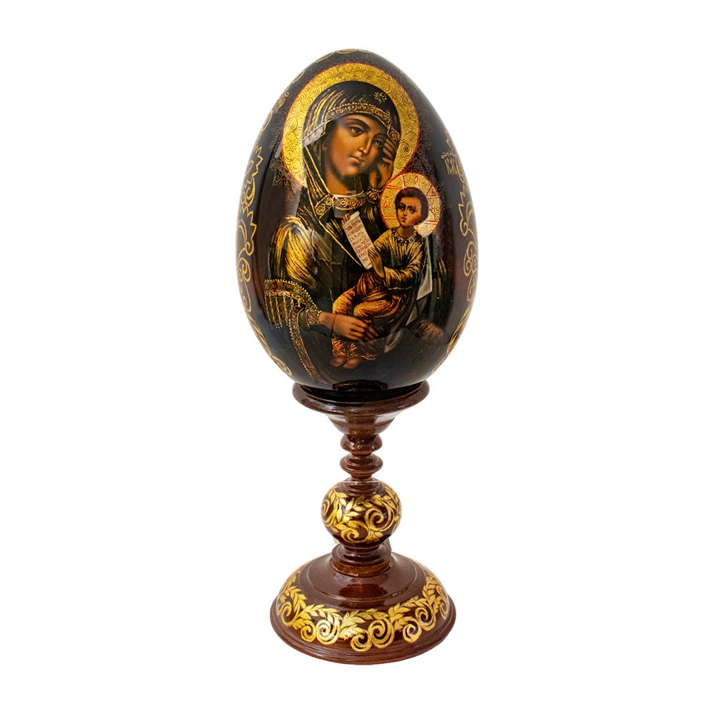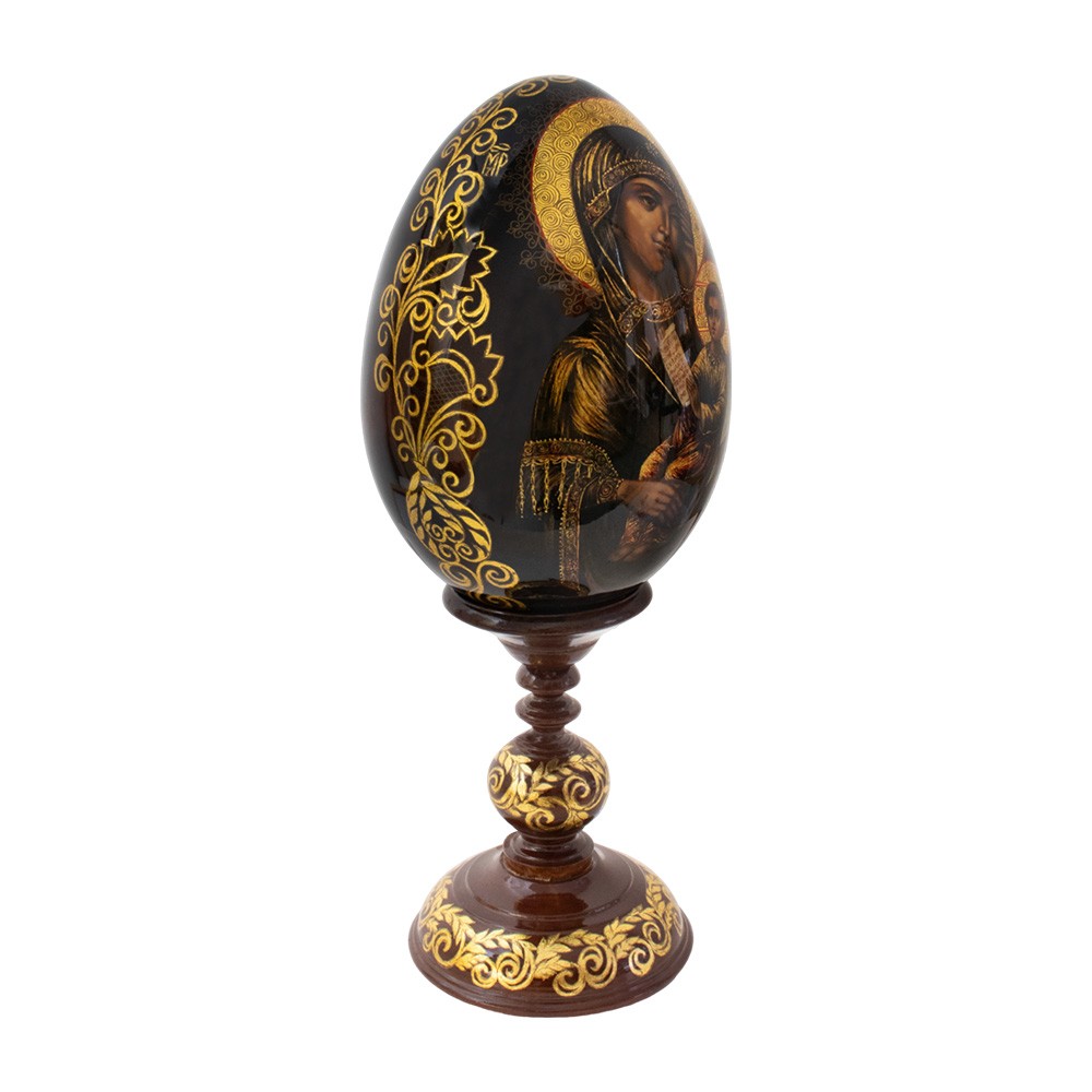 Russian egg with stand, crafted entirely from hand-painted wood.