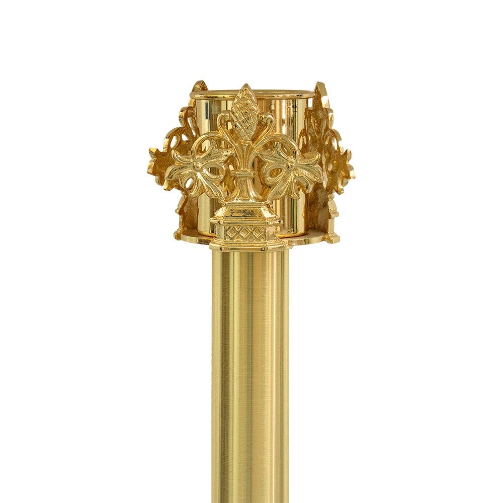 Shipping in 2 weeksCandle stand in golden brass, h 75 cm.