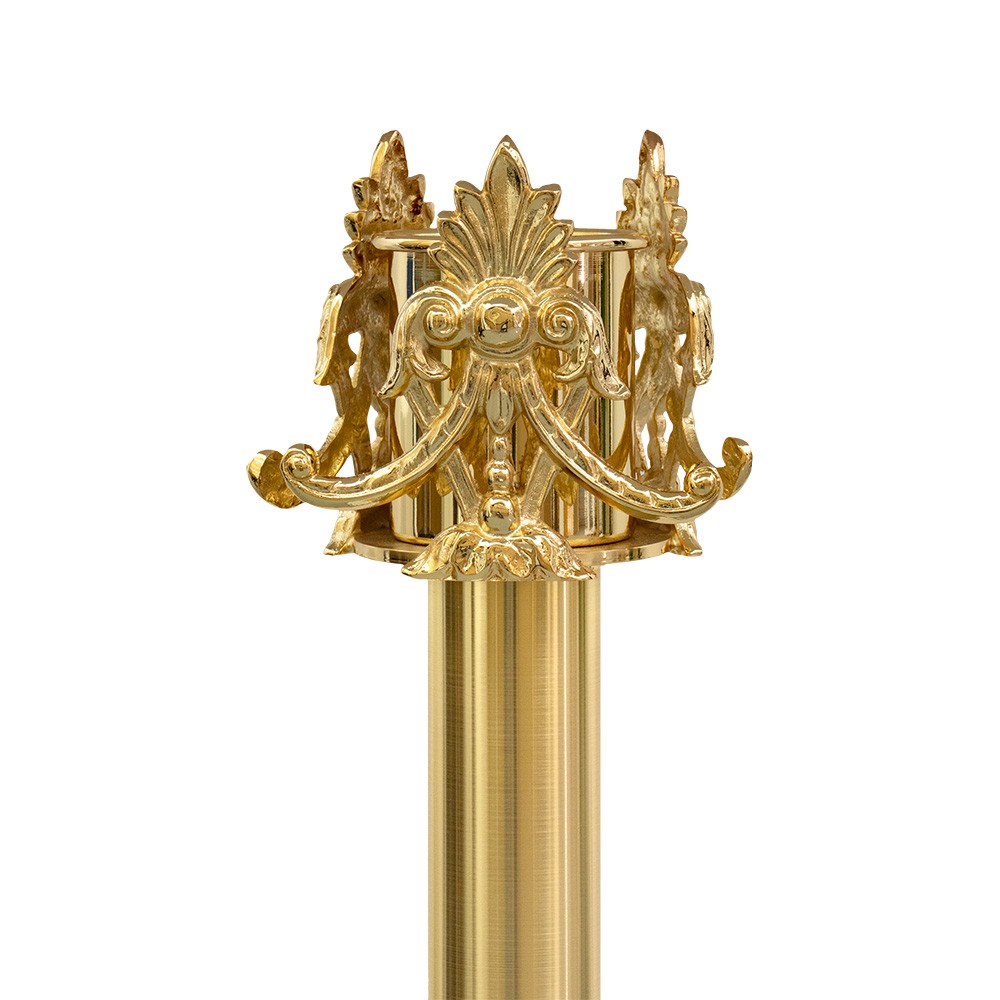 Guaranteed Shipping in 24-48 hElegant wooden Paschal candle holder with gold leaf finish, designed for candles with an 8 cm diameter.