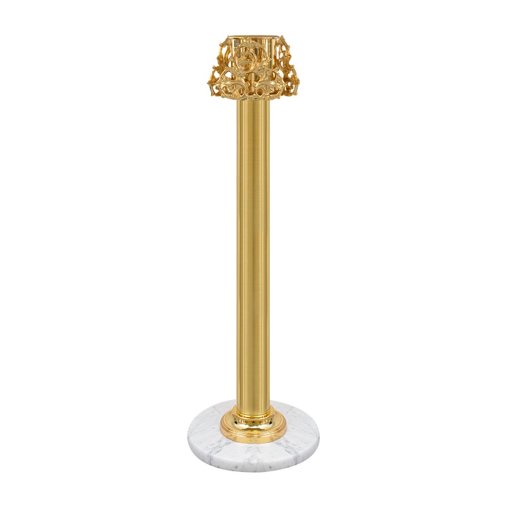 This stand for Easter candle is entirely made of brass in gold finish with base in light marble.
